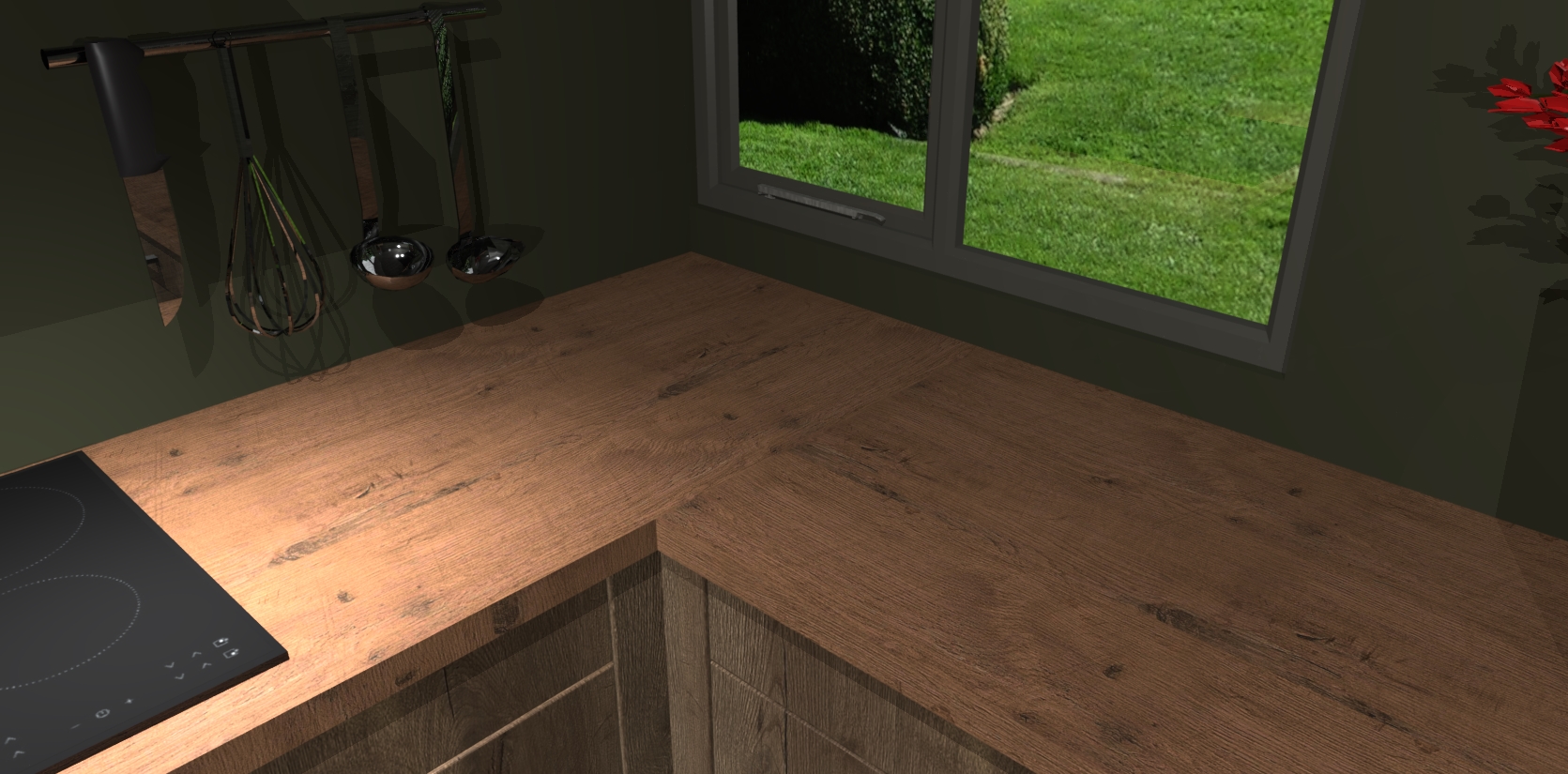 - Bij een hoekwerkblad zijn de hoeken in gevreesd en op maat gemaakt