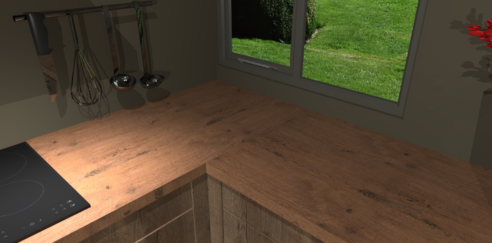 - Bij een hoekwerkblad zijn de hoeken in gevreesd en op maat gemaakt