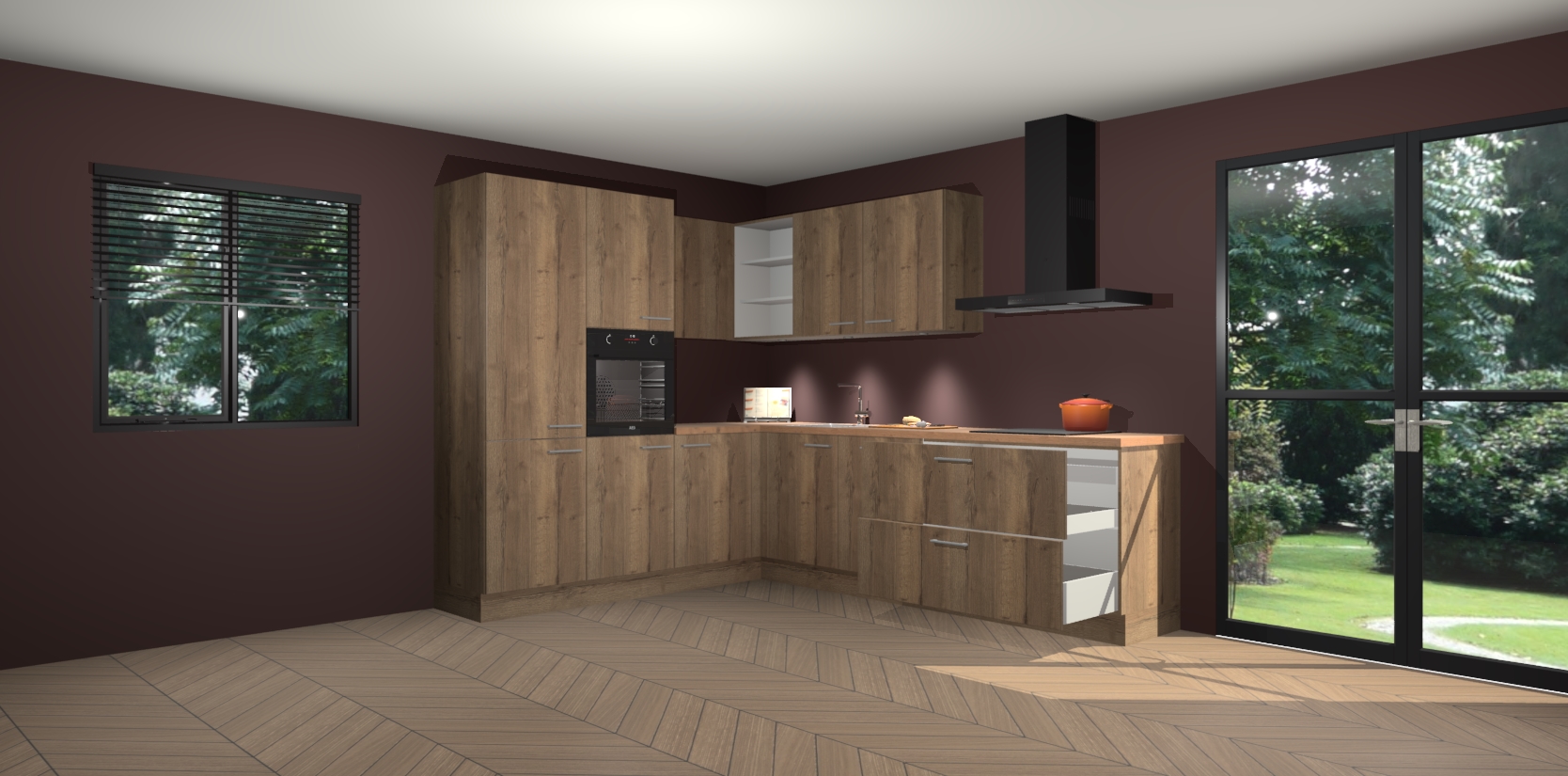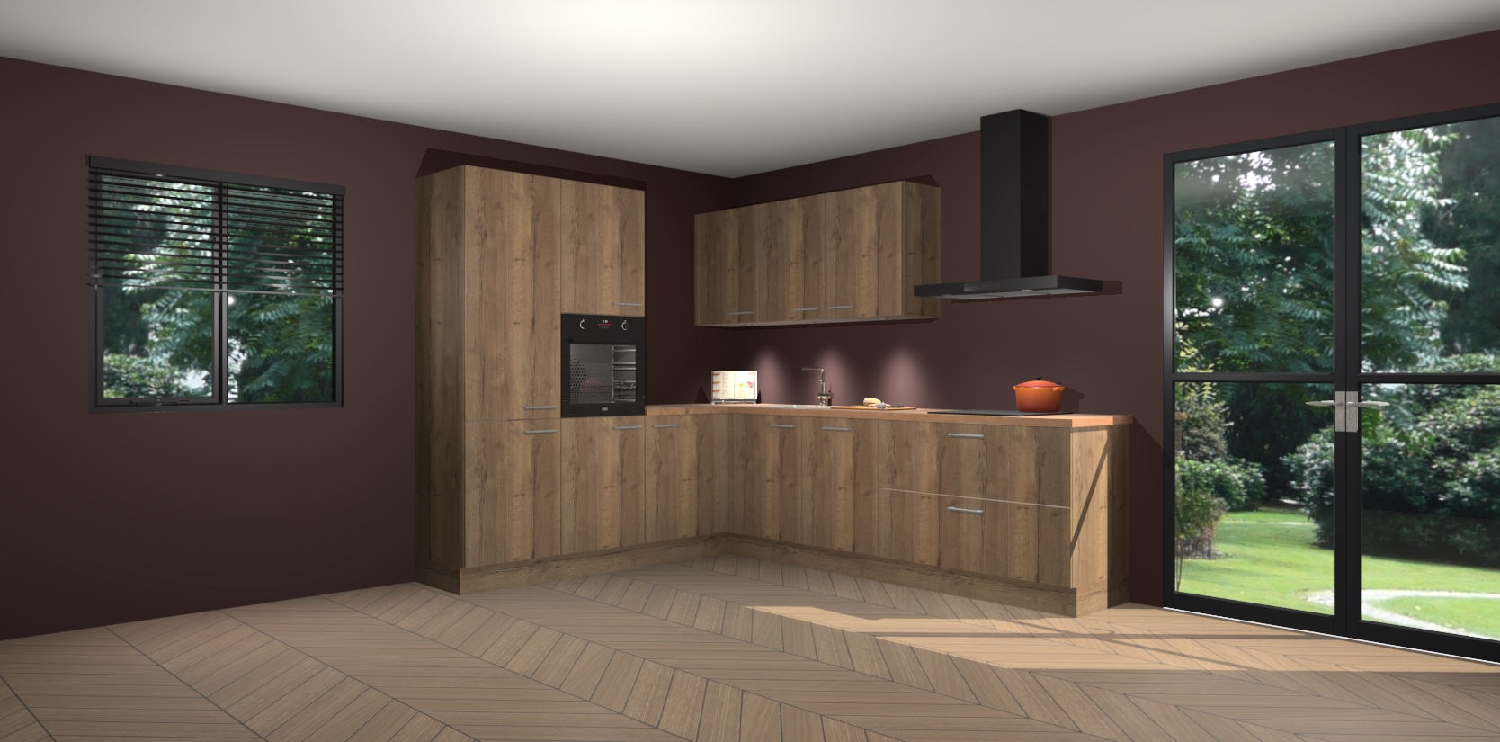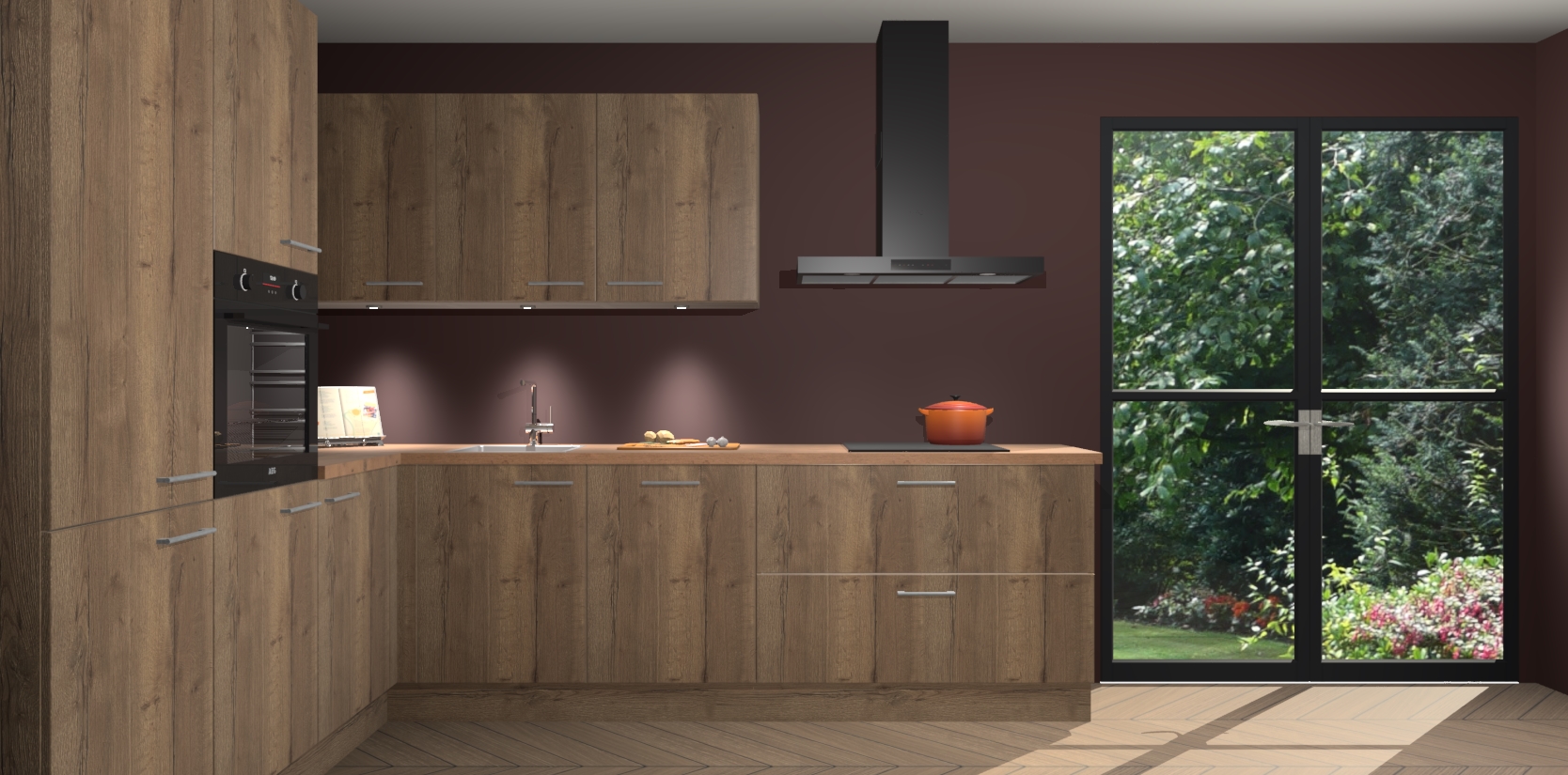 Maak kennis met de chocolade eiken keuken Parla - de perfecte aanvulling voor uw moderne keuken! Ervaar tijdloos design, elegantie en een chique uitstraling met onze zwarte handgrepen, soft-close deuren en veel opbergruimte. Dit alles wordt aangeboden tegen een vaste lage prijs voor ongeëvenaarde Duitse keukenkwaliteit!