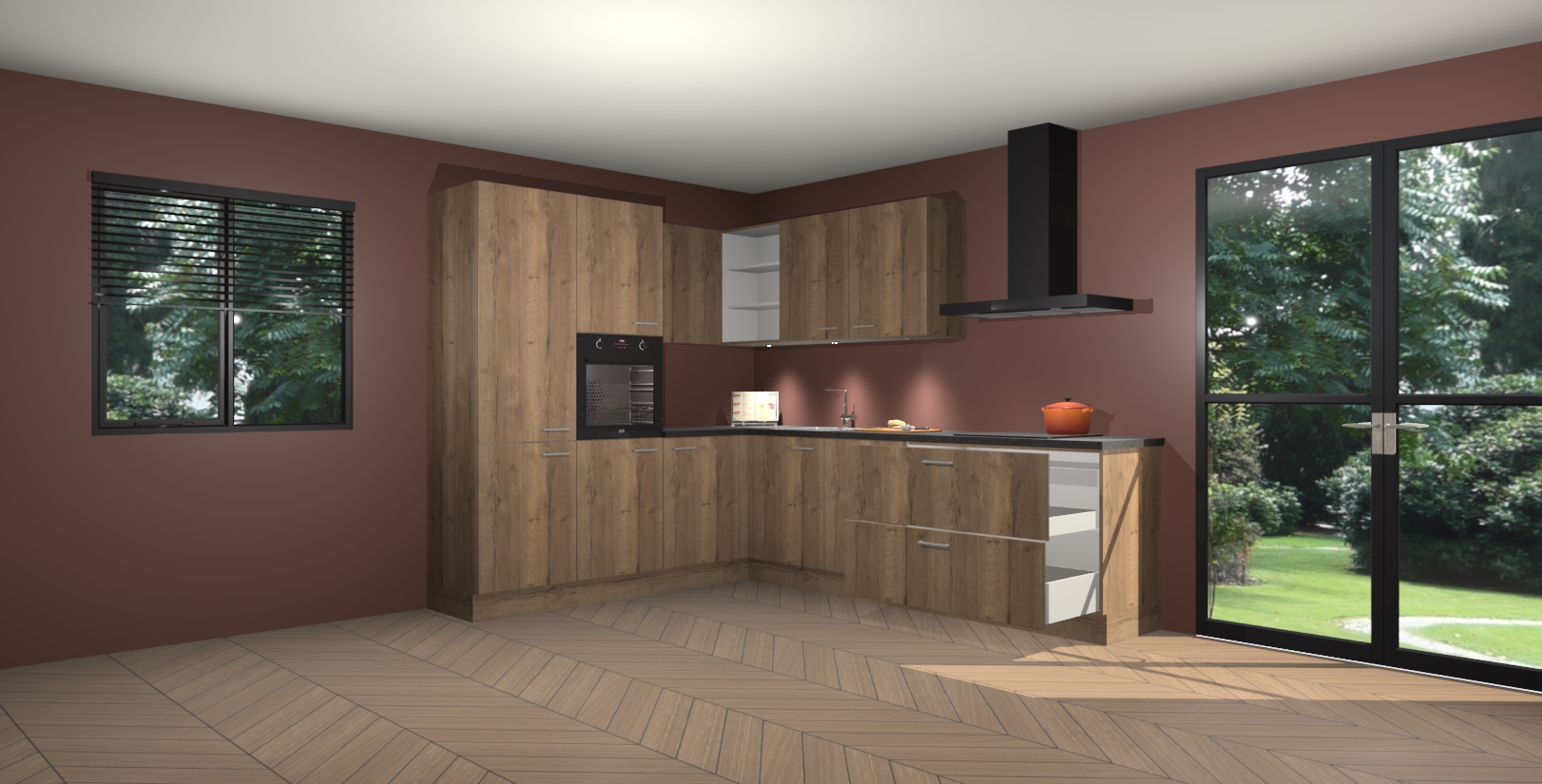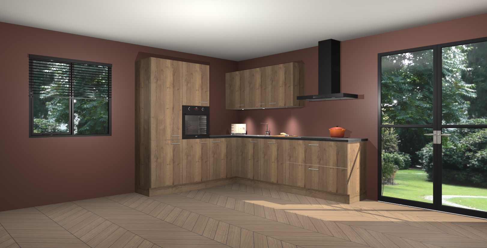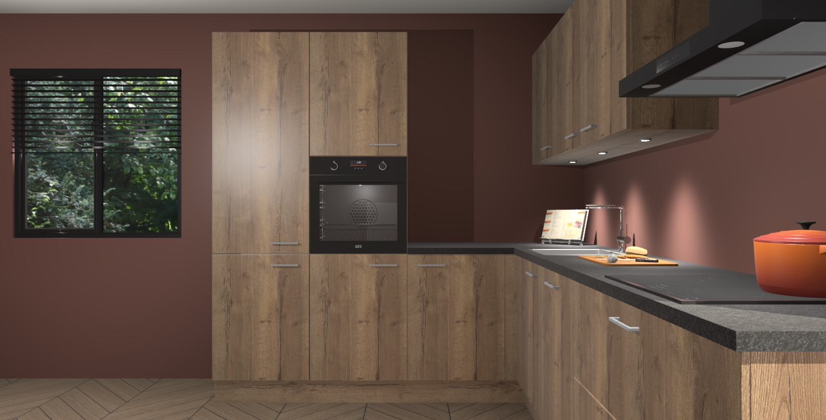 Maak kennis met de chocolade eiken keuken Parla - de perfecte aanvulling voor uw moderne keuken! Ervaar tijdloos design, elegantie en een chique uitstraling met onze zwarte handgrepen, soft-close deuren en veel opbergruimte. Dit alles wordt aangeboden tegen een vaste lage prijs voor ongeëvenaarde Duitse keukenkwaliteit!