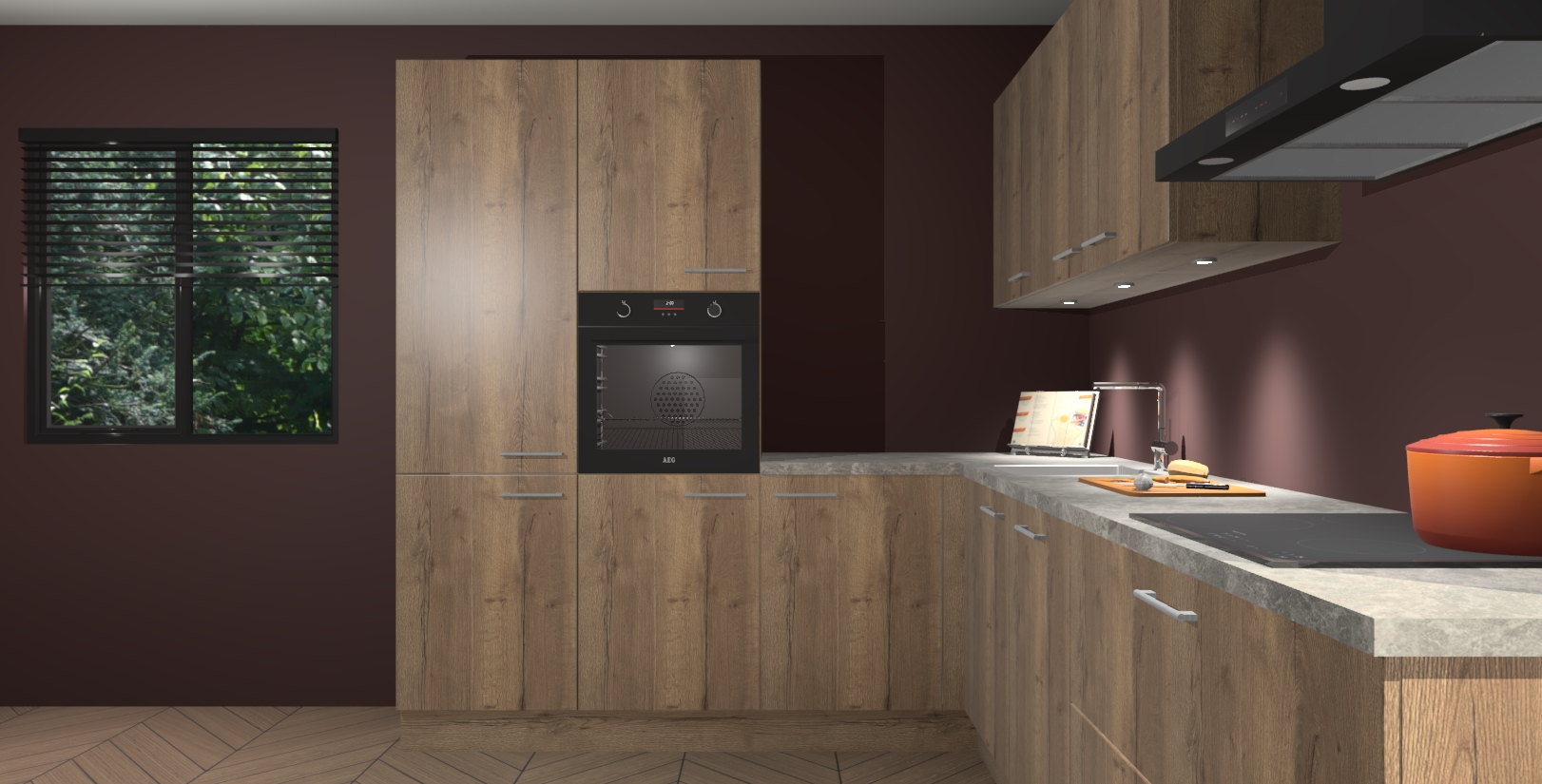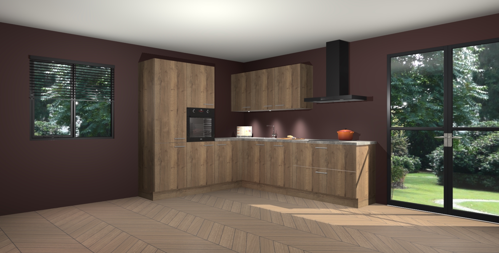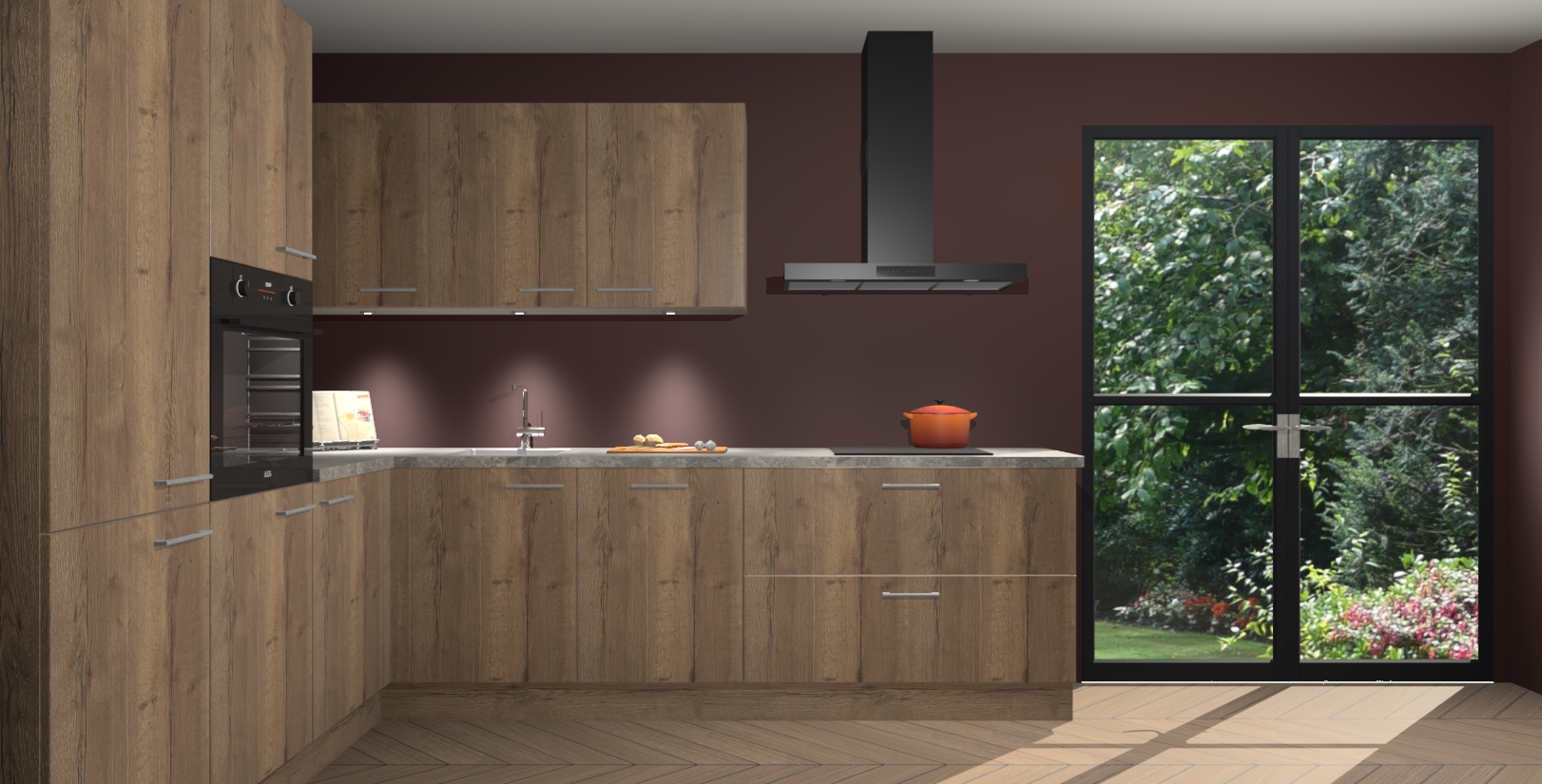 Maak kennis met de chocolade eiken keuken Parla - de perfecte aanvulling voor uw moderne keuken! Ervaar tijdloos design, elegantie en een chique uitstraling met onze zwarte handgrepen, soft-close deuren en veel opbergruimte. Dit alles wordt aangeboden tegen een vaste lage prijs voor ongeëvenaarde Duitse keukenkwaliteit!