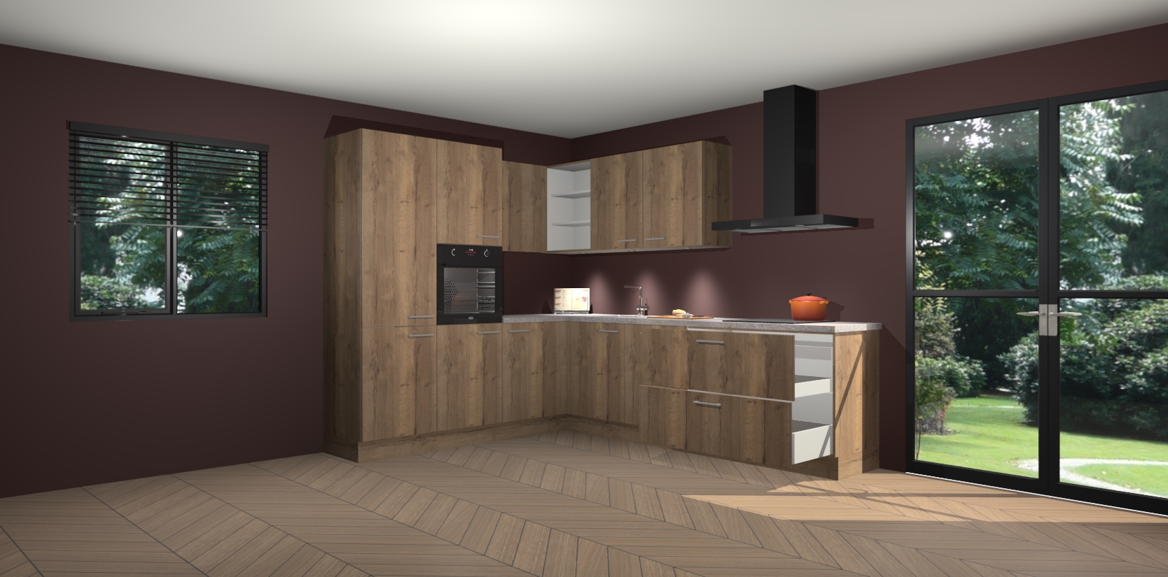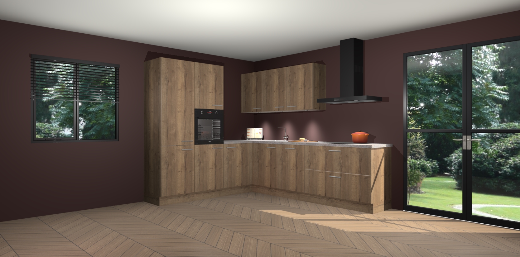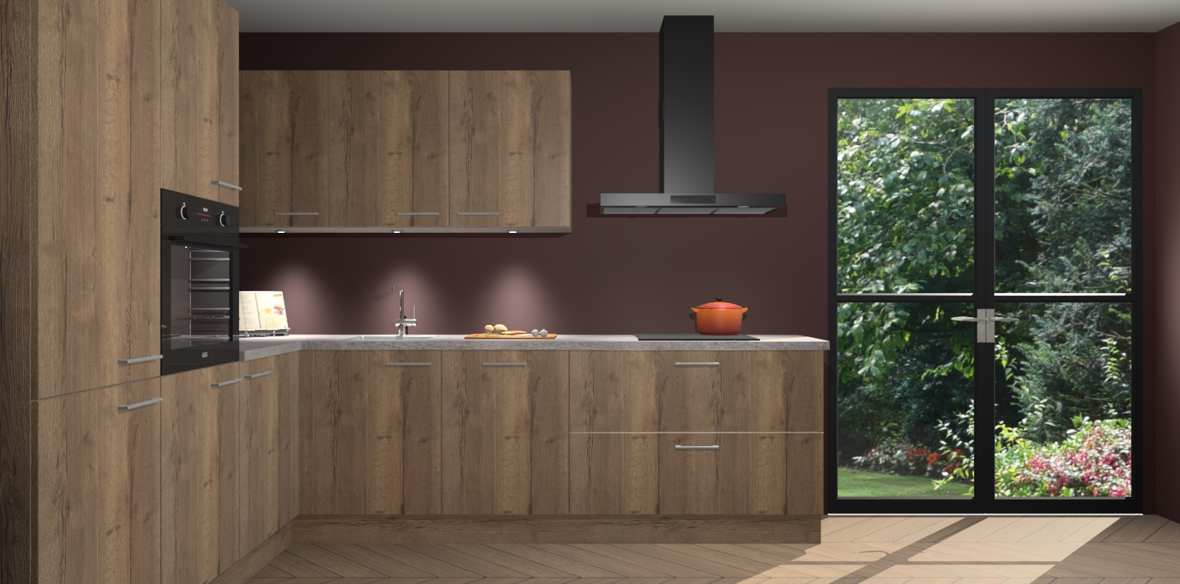 Maak kennis met de chocolade eiken keuken Parla - de perfecte aanvulling voor uw moderne keuken! Ervaar tijdloos design, elegantie en een chique uitstraling met onze zwarte handgrepen, soft-close deuren en veel opbergruimte. Dit alles wordt aangeboden tegen een vaste lage prijs voor ongeëvenaarde Duitse keukenkwaliteit!
