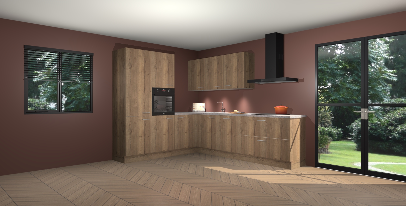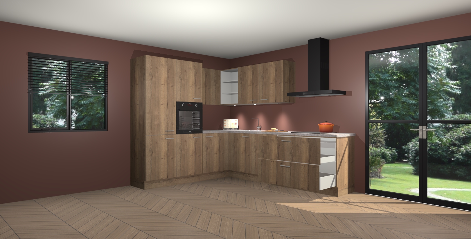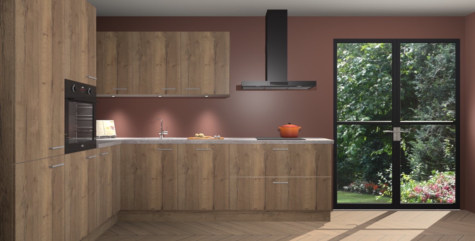 Maak kennis met de chocolade eiken keuken Parla - de perfecte aanvulling voor uw moderne keuken! Ervaar tijdloos design, elegantie en een chique uitstraling met onze zwarte handgrepen, soft-close deuren en veel opbergruimte. Dit alles wordt aangeboden tegen een vaste lage prijs voor ongeëvenaarde Duitse keukenkwaliteit!