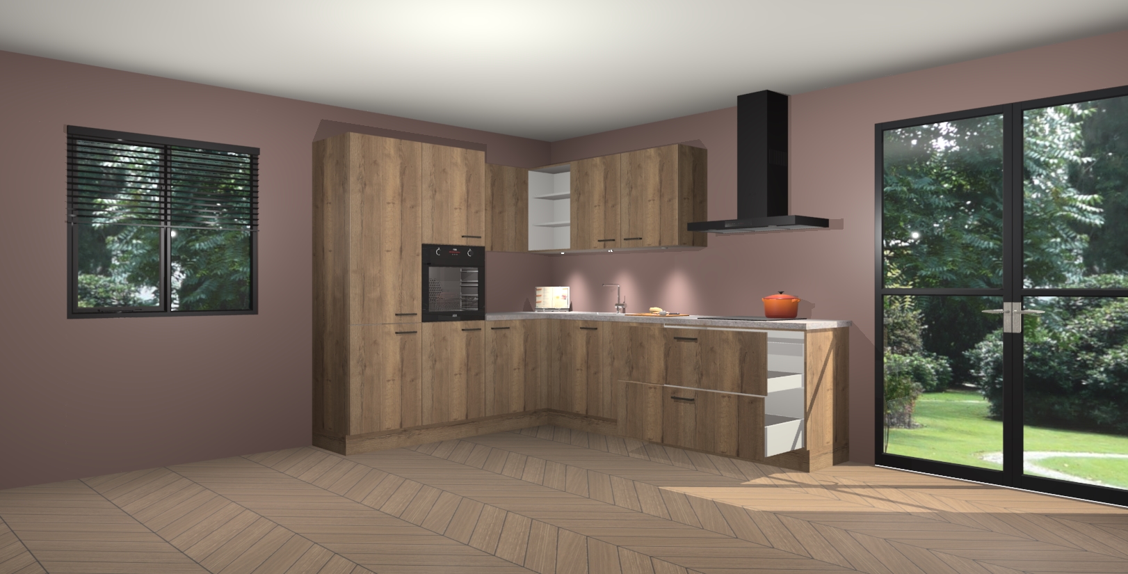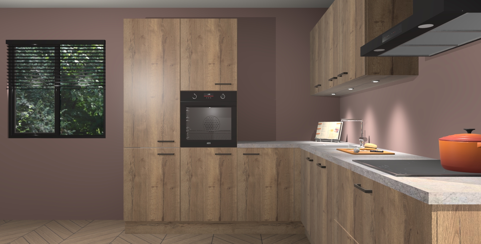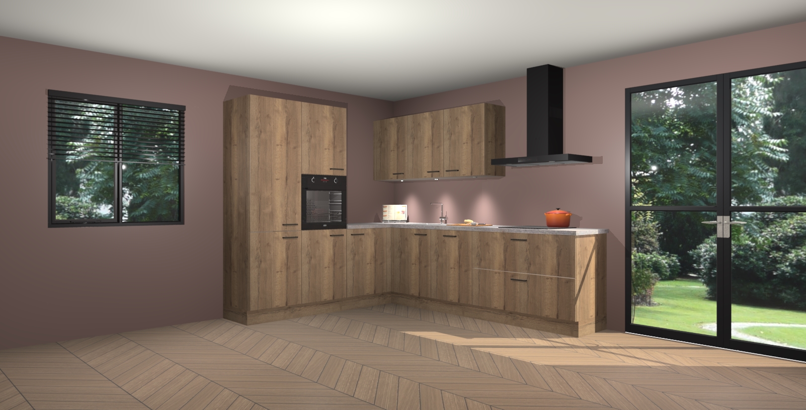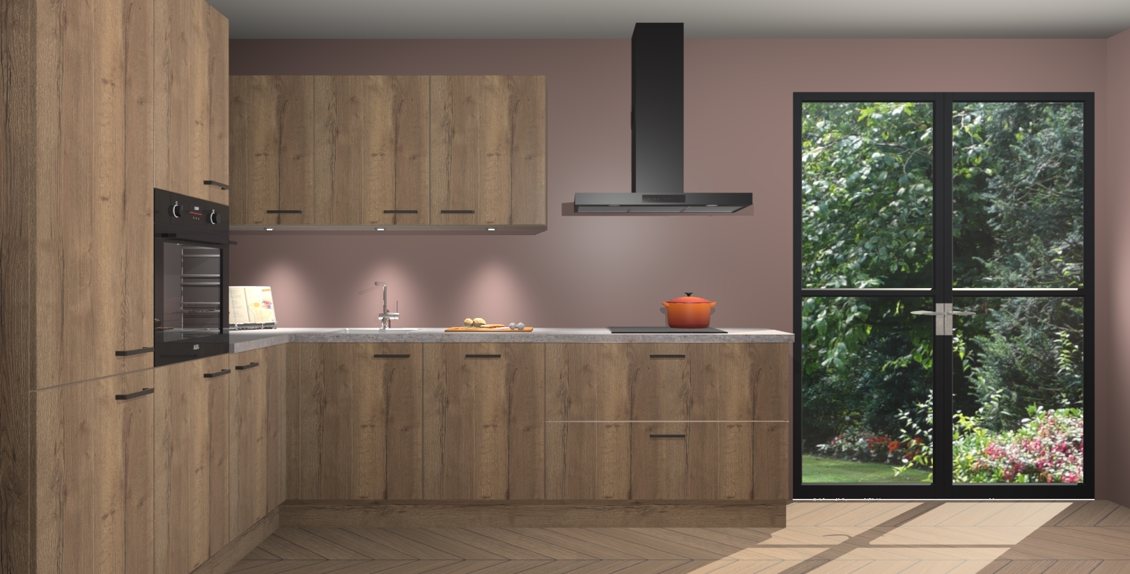Maak kennis met de chocolade eiken keuken Parla - de perfecte aanvulling voor uw moderne keuken! Ervaar tijdloos design, elegantie en een chique uitstraling met onze zwarte handgrepen, soft-close deuren en veel opbergruimte. Dit alles wordt aangeboden tegen een vaste lage prijs voor ongeëvenaarde Duitse keukenkwaliteit!