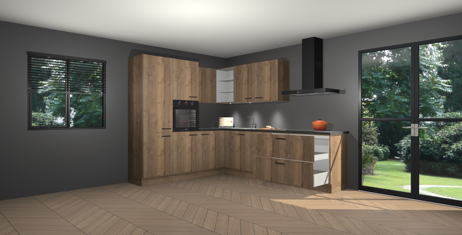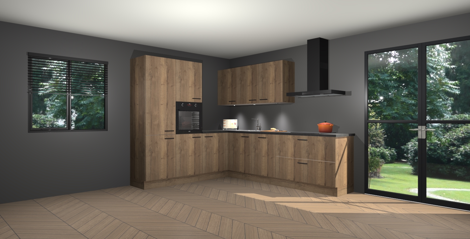 Maak kennis met de chocolade eiken keuken Parla - de perfecte aanvulling voor uw moderne keuken! Ervaar tijdloos design, elegantie en een chique uitstraling met onze zwarte handgrepen, soft-close deuren en veel opbergruimte. Dit alles wordt aangeboden tegen een vaste lage prijs voor ongeëvenaarde Duitse keukenkwaliteit!