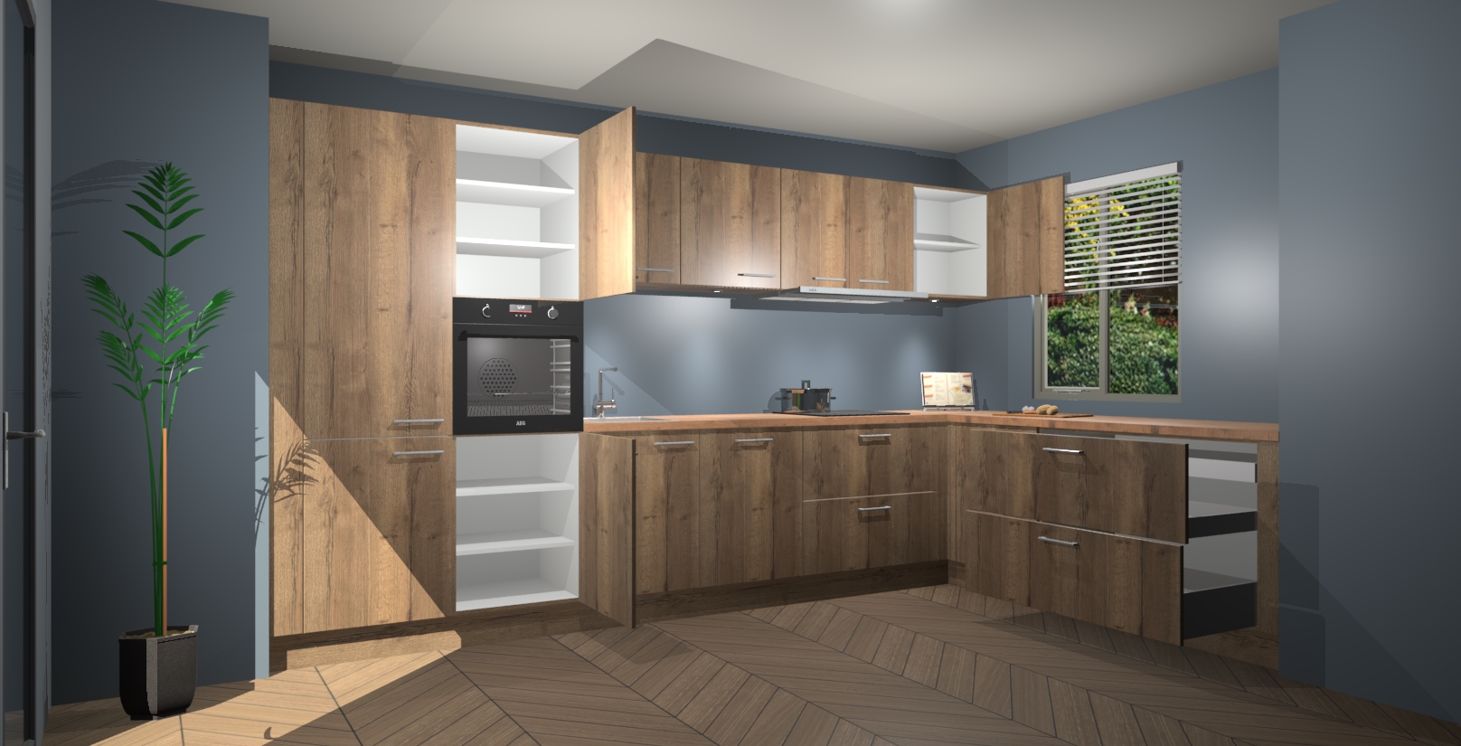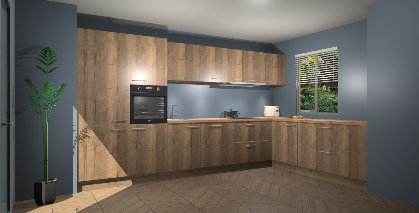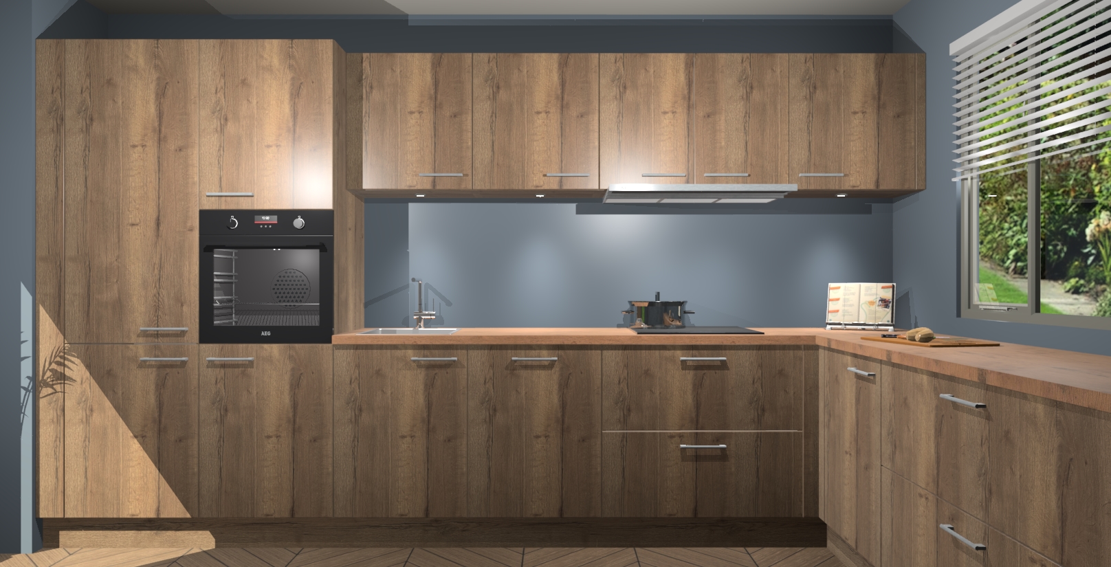 Verwelkom de natuurlijke warmte van de Chocolade Eiken keuken Petten in uw huis. Deze prachtige hoekkeuken met zijn moderne design en warme houten look geeft u meer dan genoeg opbergruimte om uw comfortabel te voelen in uw keuken. Geniet van soft-close deuren die al uw gasten het gevoel zullen geven dat ze zich in een luxueuze ruimte bevinden.