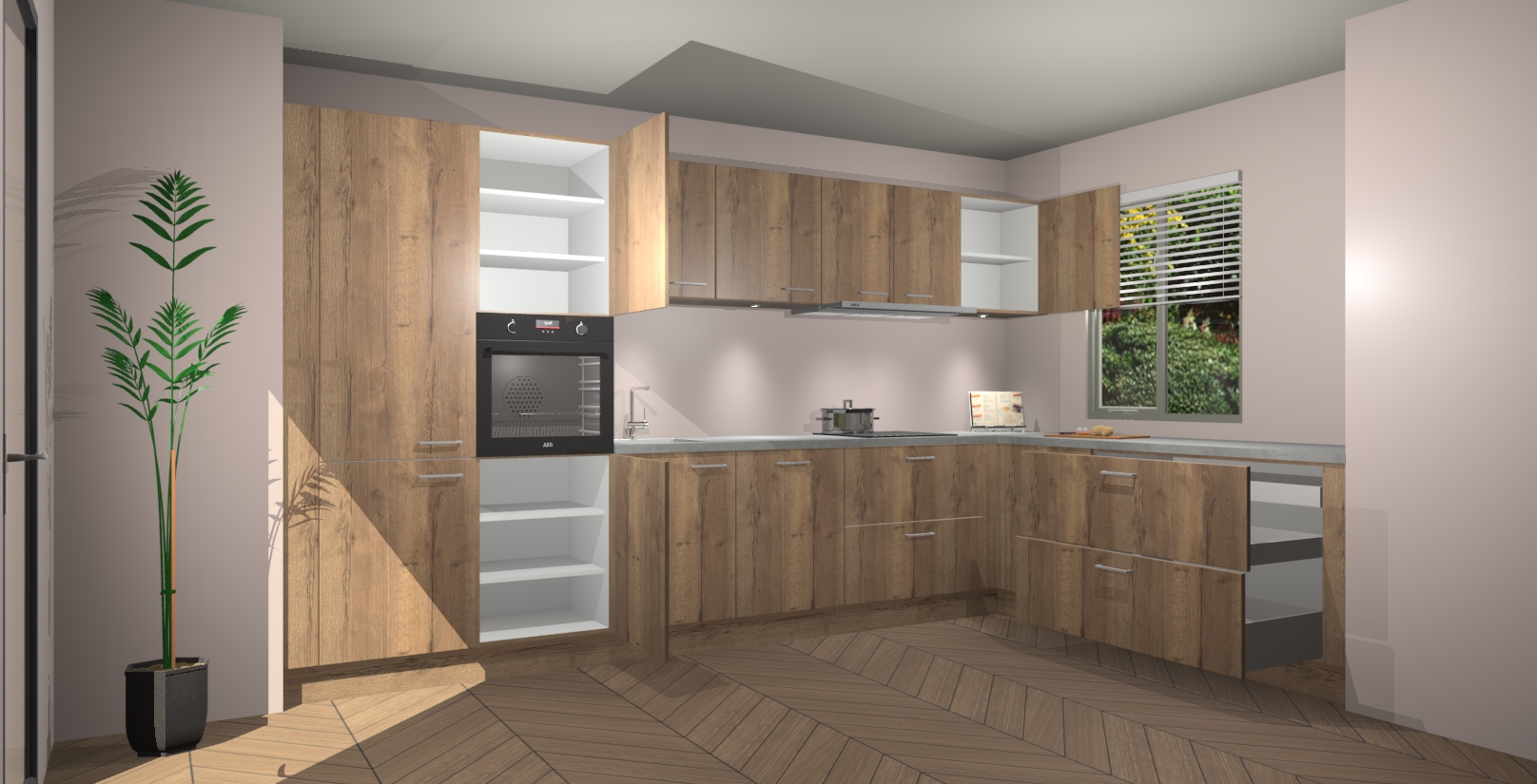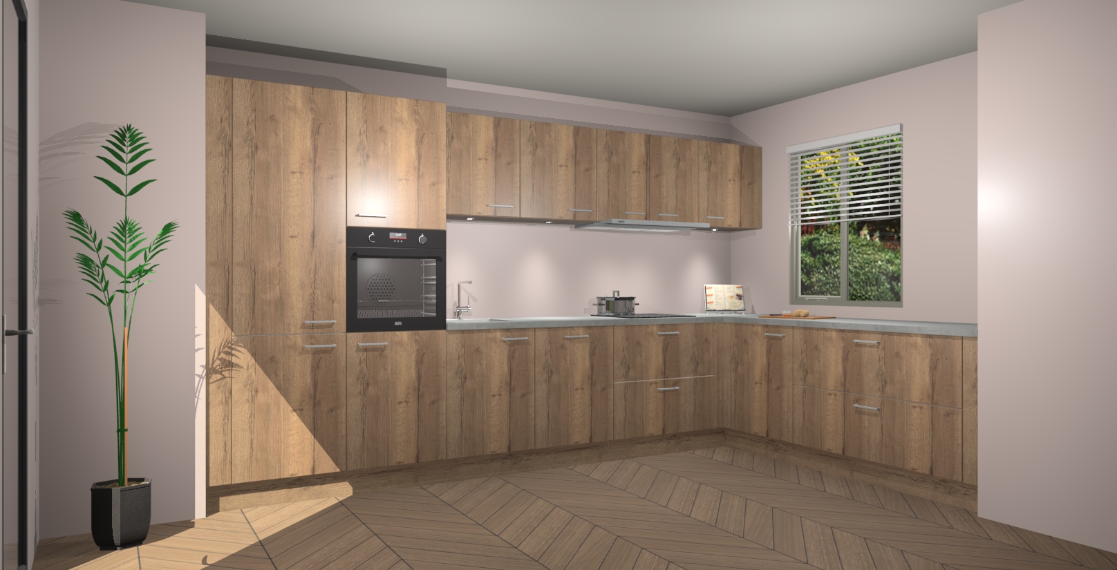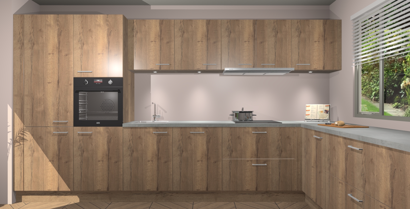 Verwelkom de natuurlijke warmte van de Chocolade Eiken keuken Petten in uw huis. Deze prachtige hoekkeuken met zijn moderne design en warme houten look geeft u meer dan genoeg opbergruimte om uw comfortabel te voelen in uw keuken. Geniet van soft-close deuren die al uw gasten het gevoel zullen geven dat ze zich in een luxueuze ruimte bevinden.