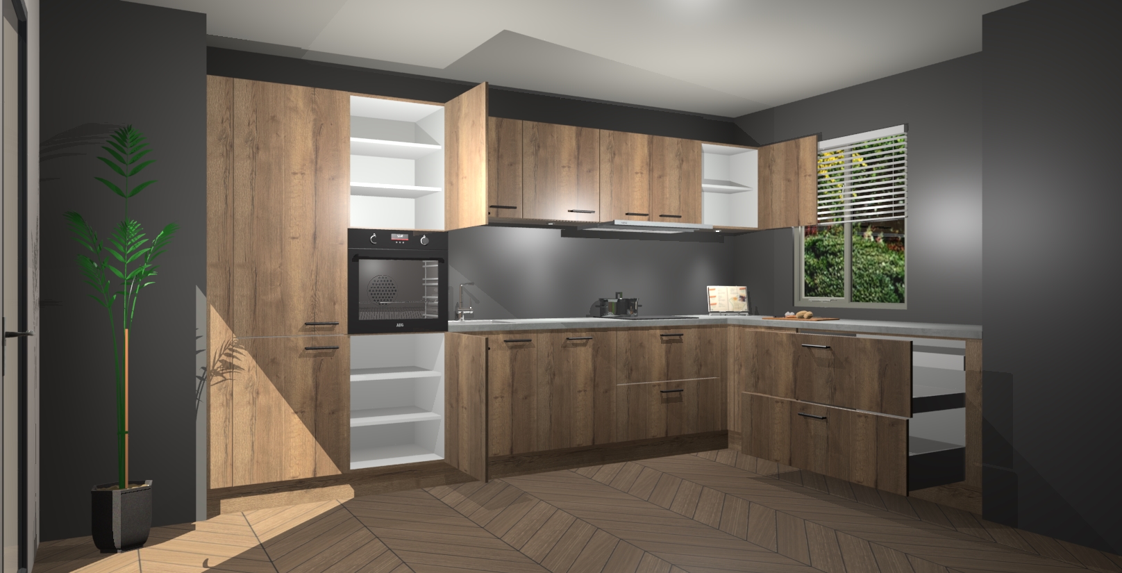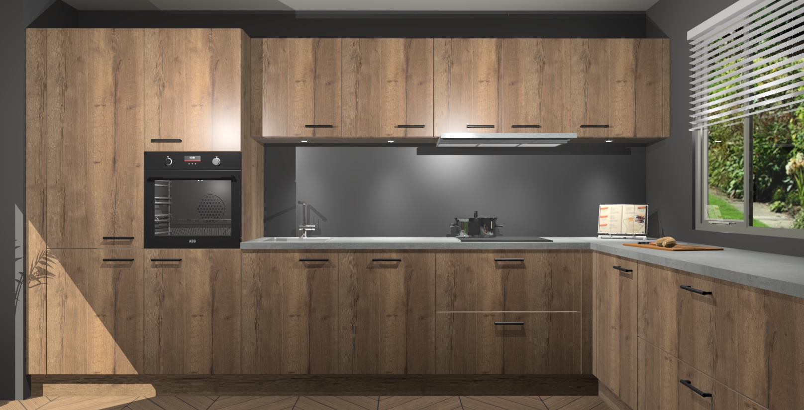 Verwelkom de natuurlijke warmte van de Chocolade Eiken keuken Petten in uw huis. Deze prachtige hoekkeuken met zijn moderne design en warme houten look geeft u meer dan genoeg opbergruimte om uw comfortabel te voelen in uw keuken. Geniet van soft-close deuren die al uw gasten het gevoel zullen geven dat ze zich in een luxueuze ruimte bevinden.