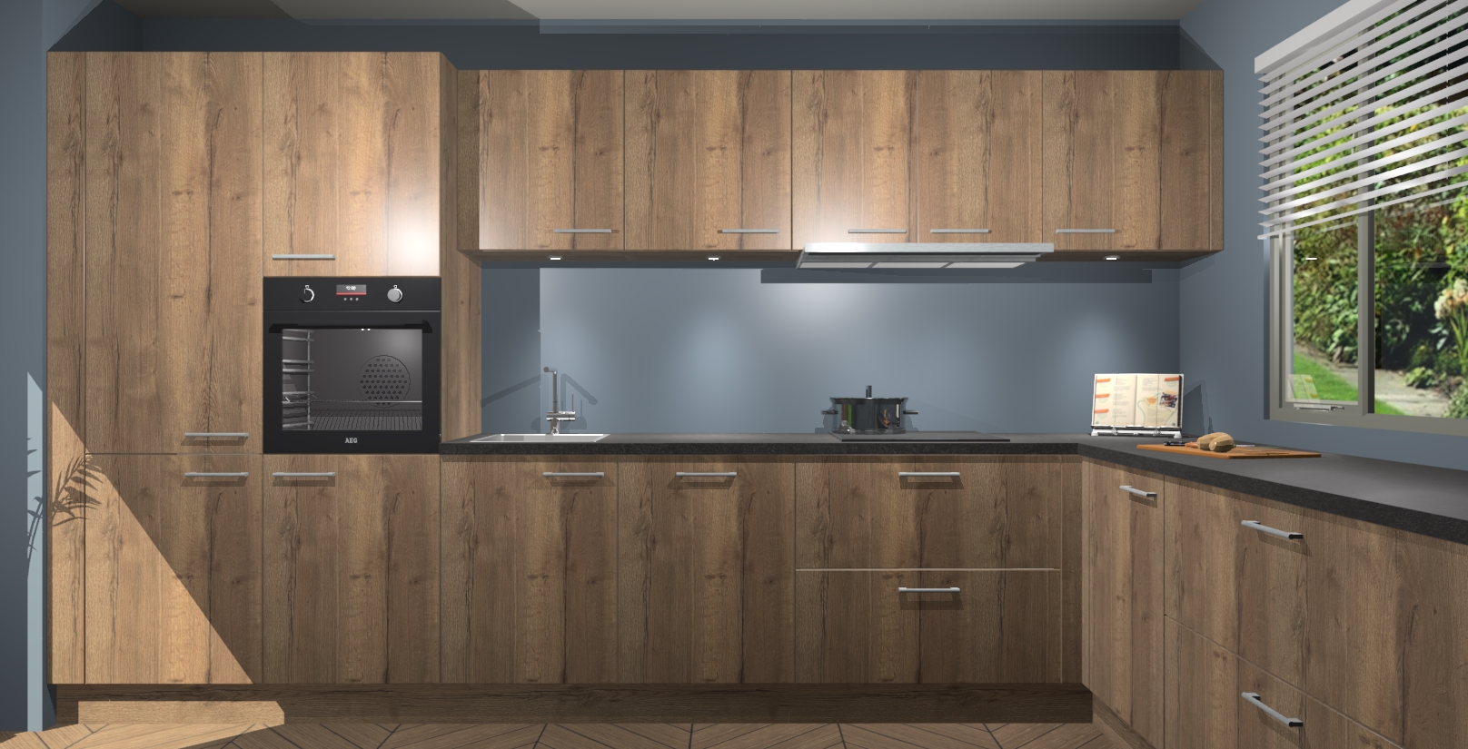 Verwelkom de natuurlijke warmte van de Chocolade Eiken keuken Petten in uw huis. Deze prachtige hoekkeuken met zijn moderne design en warme houten look geeft u meer dan genoeg opbergruimte om uw comfortabel te voelen in uw keuken. Geniet van soft-close deuren die al uw gasten het gevoel zullen geven dat ze zich in een luxueuze ruimte bevinden.