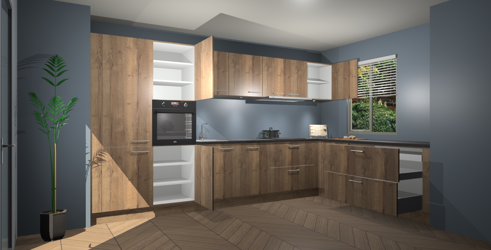 Inclusief plinten, stelpoten en werkblad