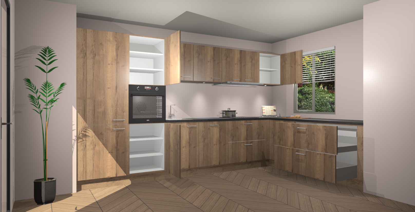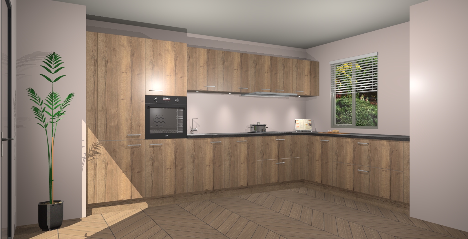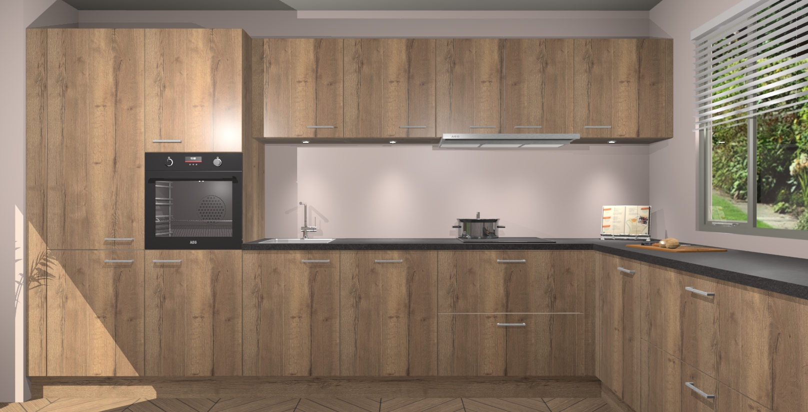 Verwelkom de natuurlijke warmte van de Chocolade Eiken keuken Petten in uw huis. Deze prachtige hoekkeuken met zijn moderne design en warme houten look geeft u meer dan genoeg opbergruimte om uw comfortabel te voelen in uw keuken. Geniet van soft-close deuren die al uw gasten het gevoel zullen geven dat ze zich in een luxueuze ruimte bevinden.