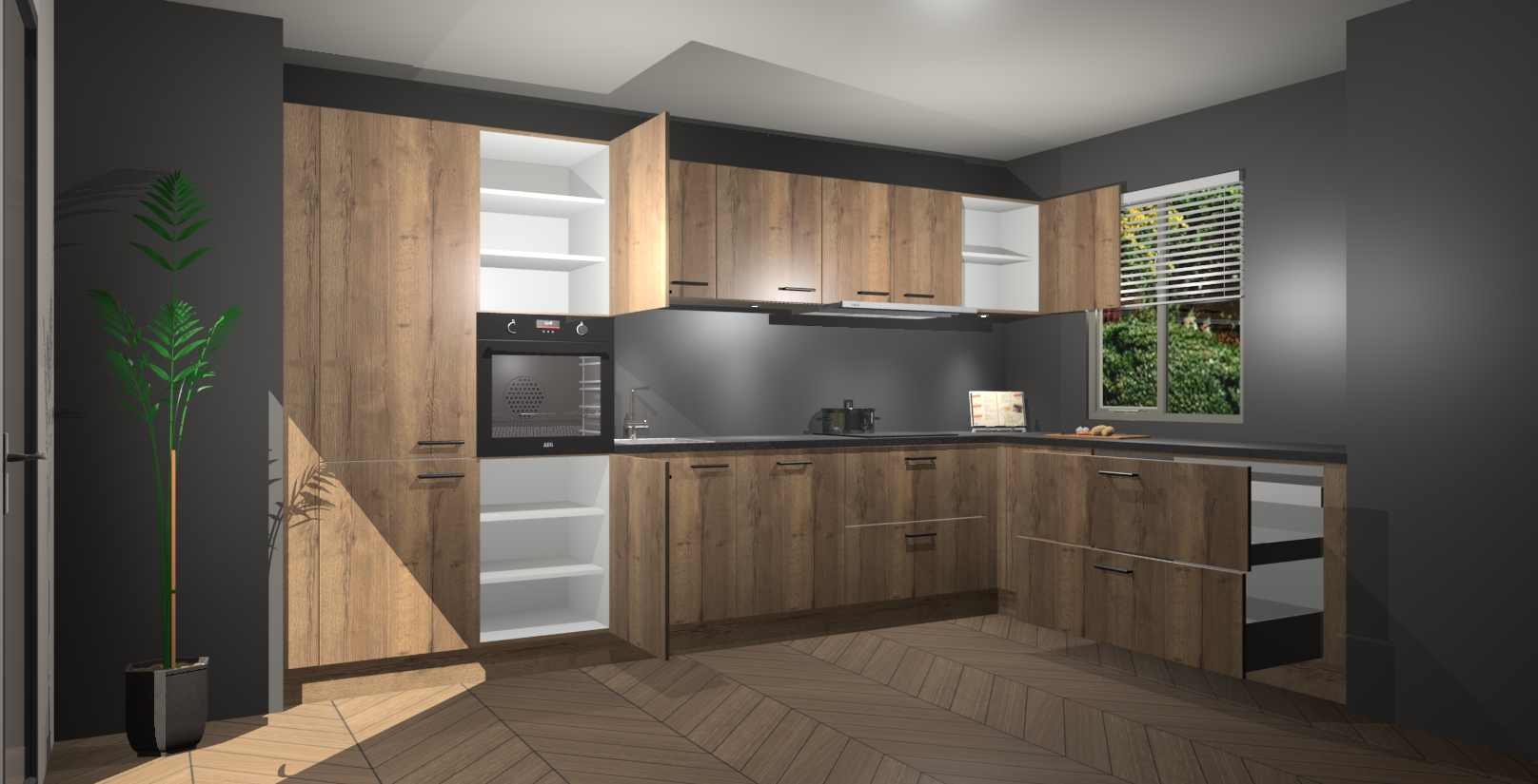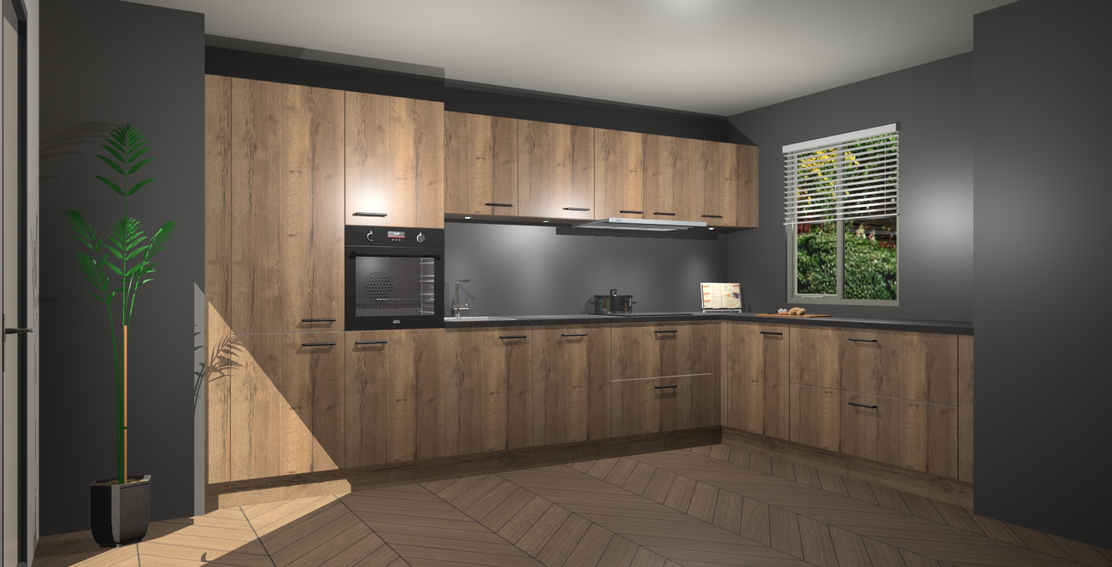 Verwelkom de natuurlijke warmte van de Chocolade Eiken keuken Petten in uw huis. Deze prachtige hoekkeuken met zijn moderne design en warme houten look geeft u meer dan genoeg opbergruimte om uw comfortabel te voelen in uw keuken. Geniet van soft-close deuren die al uw gasten het gevoel zullen geven dat ze zich in een luxueuze ruimte bevinden.