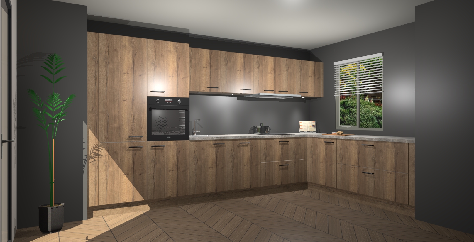 Verwelkom de natuurlijke warmte van de Chocolade Eiken keuken Petten in uw huis. Deze prachtige hoekkeuken met zijn moderne design en warme houten look geeft u meer dan genoeg opbergruimte om uw comfortabel te voelen in uw keuken. Geniet van soft-close deuren die al uw gasten het gevoel zullen geven dat ze zich in een luxueuze ruimte bevinden.