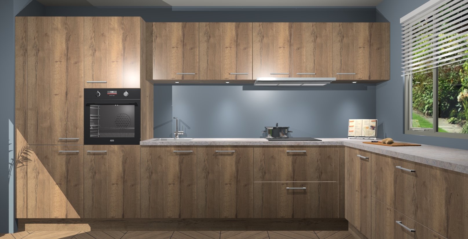 Verwelkom de natuurlijke warmte van de Chocolade Eiken keuken Petten in uw huis. Deze prachtige hoekkeuken met zijn moderne design en warme houten look geeft u meer dan genoeg opbergruimte om uw comfortabel te voelen in uw keuken. Geniet van soft-close deuren die al uw gasten het gevoel zullen geven dat ze zich in een luxueuze ruimte bevinden.