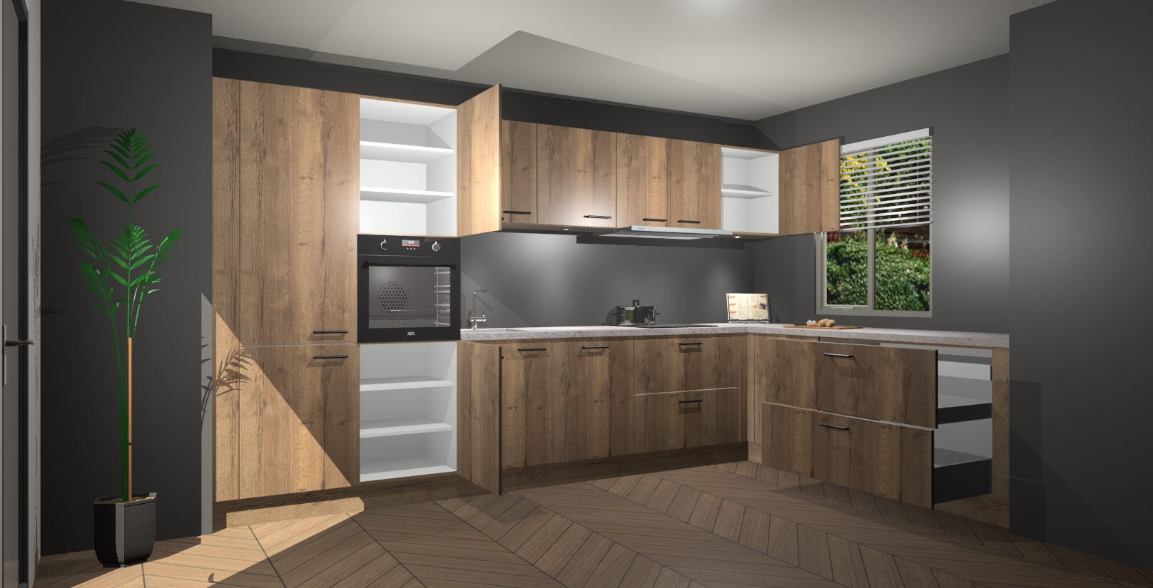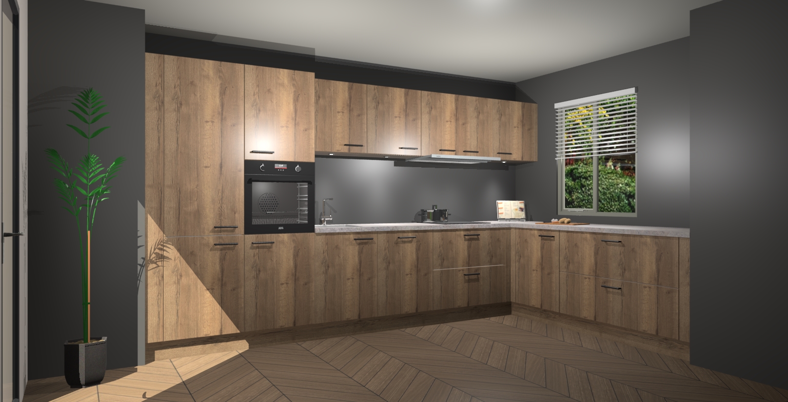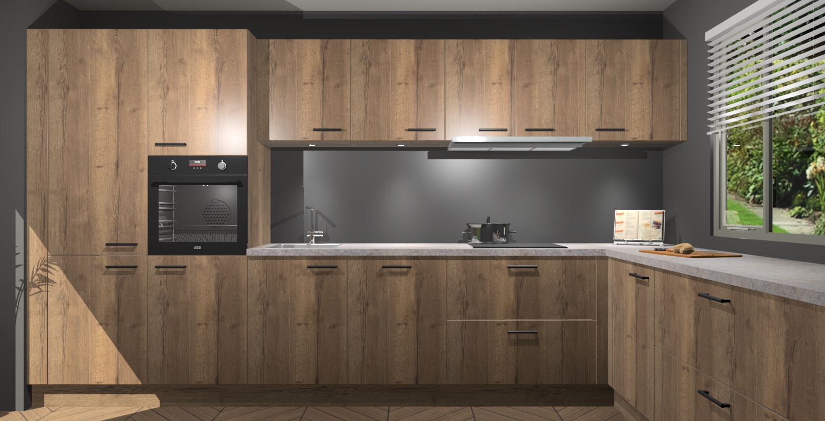 Verwelkom de natuurlijke warmte van de Chocolade Eiken keuken Petten in uw huis. Deze prachtige hoekkeuken met zijn moderne design en warme houten look geeft u meer dan genoeg opbergruimte om uw comfortabel te voelen in uw keuken. Geniet van soft-close deuren die al uw gasten het gevoel zullen geven dat ze zich in een luxueuze ruimte bevinden.