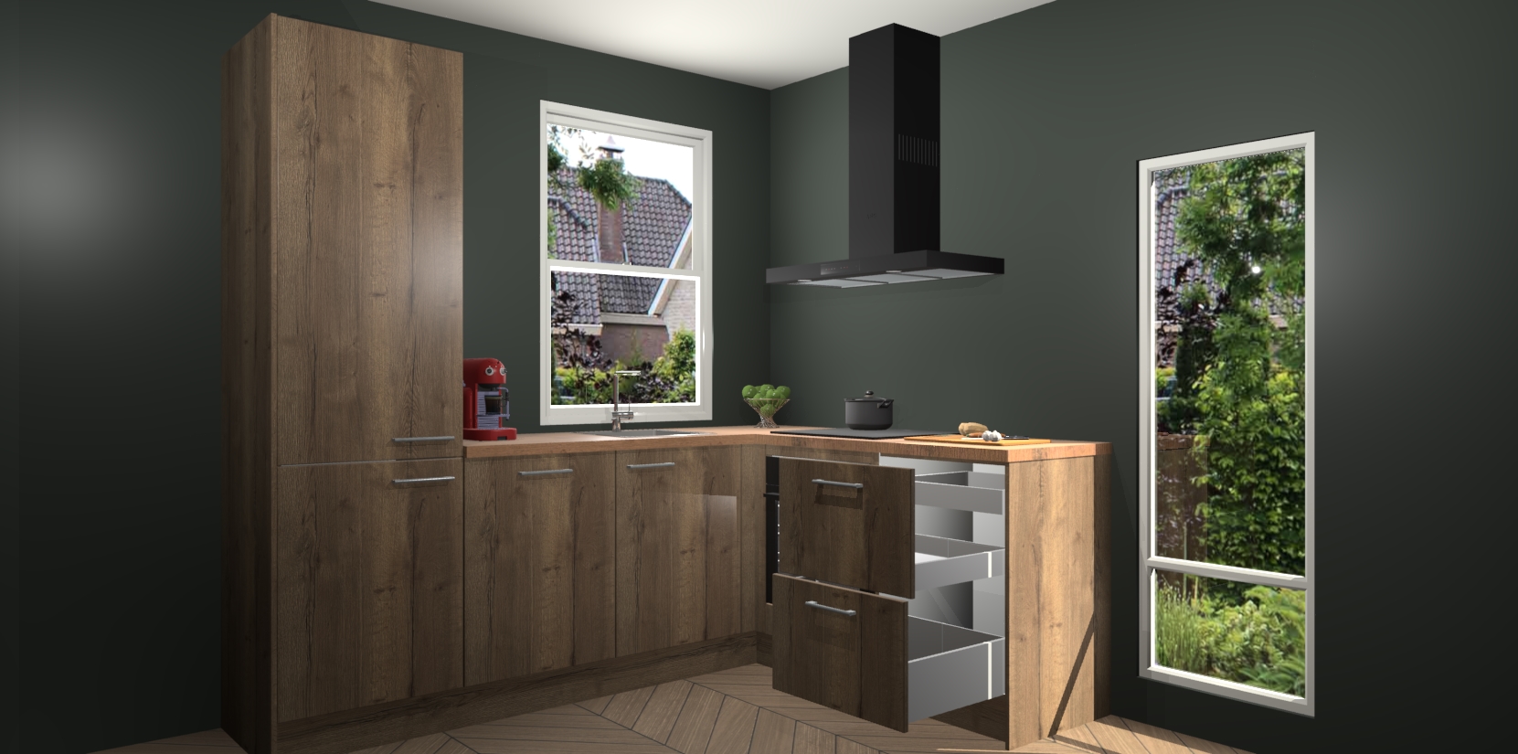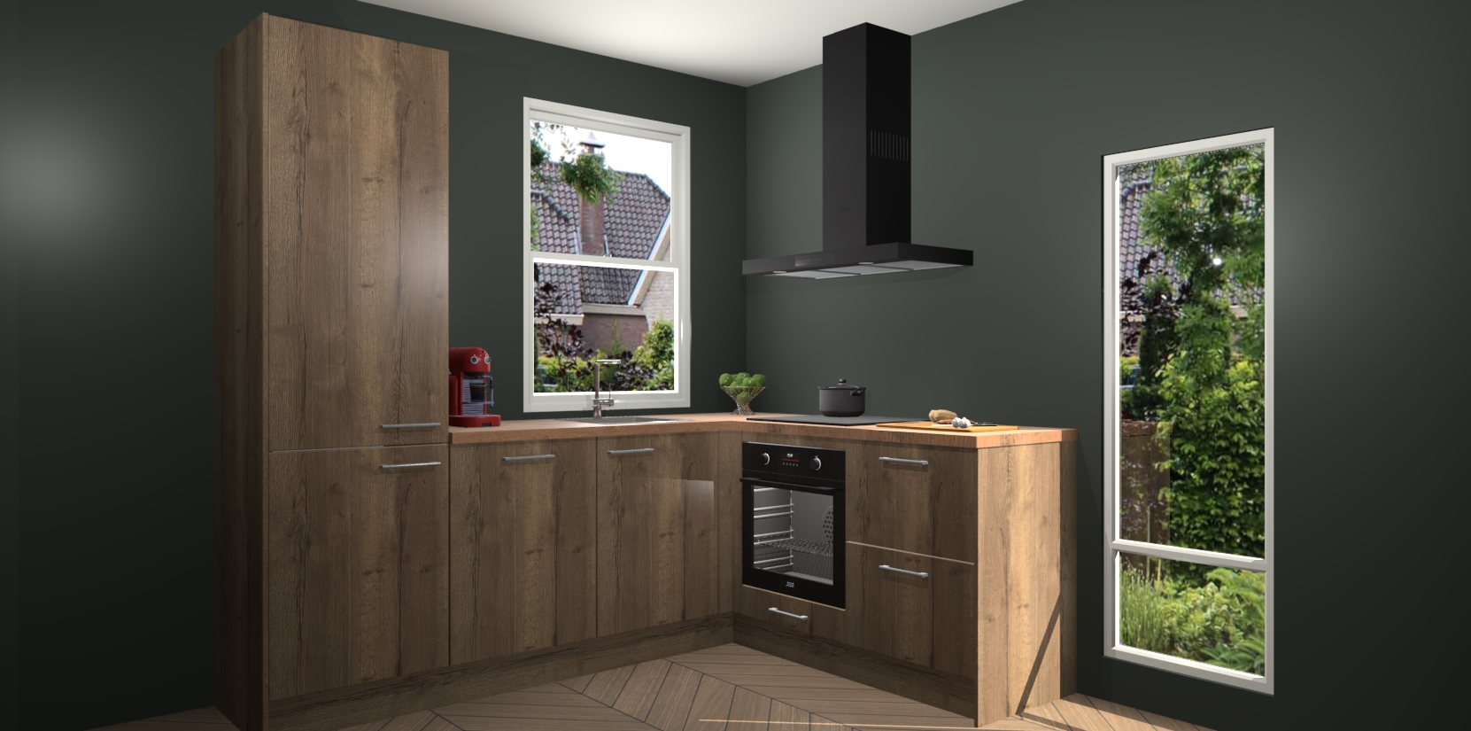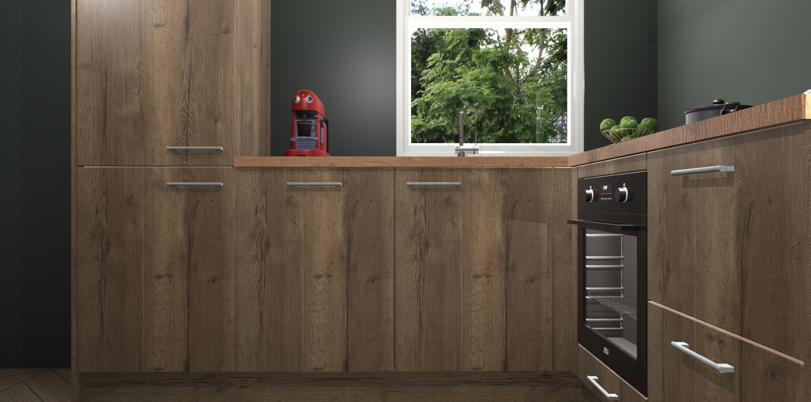 De prachtige Chocolade Eiken keuken Phuket is de perfecte keuze als u op zoek bent naar een moderne hoekkeuken met alle luxe en comfort die u kunt verwachten! De uitstraling in het houtlook-design draagt bij aan de warme sfeer die u nu al voelt wanneer u er naar kijkt. Heeft u genoeg van ouderwetse keukens? Probeer dan direct deze moderne, mooie hoekkeukens en laat iedereen verbluft achter!