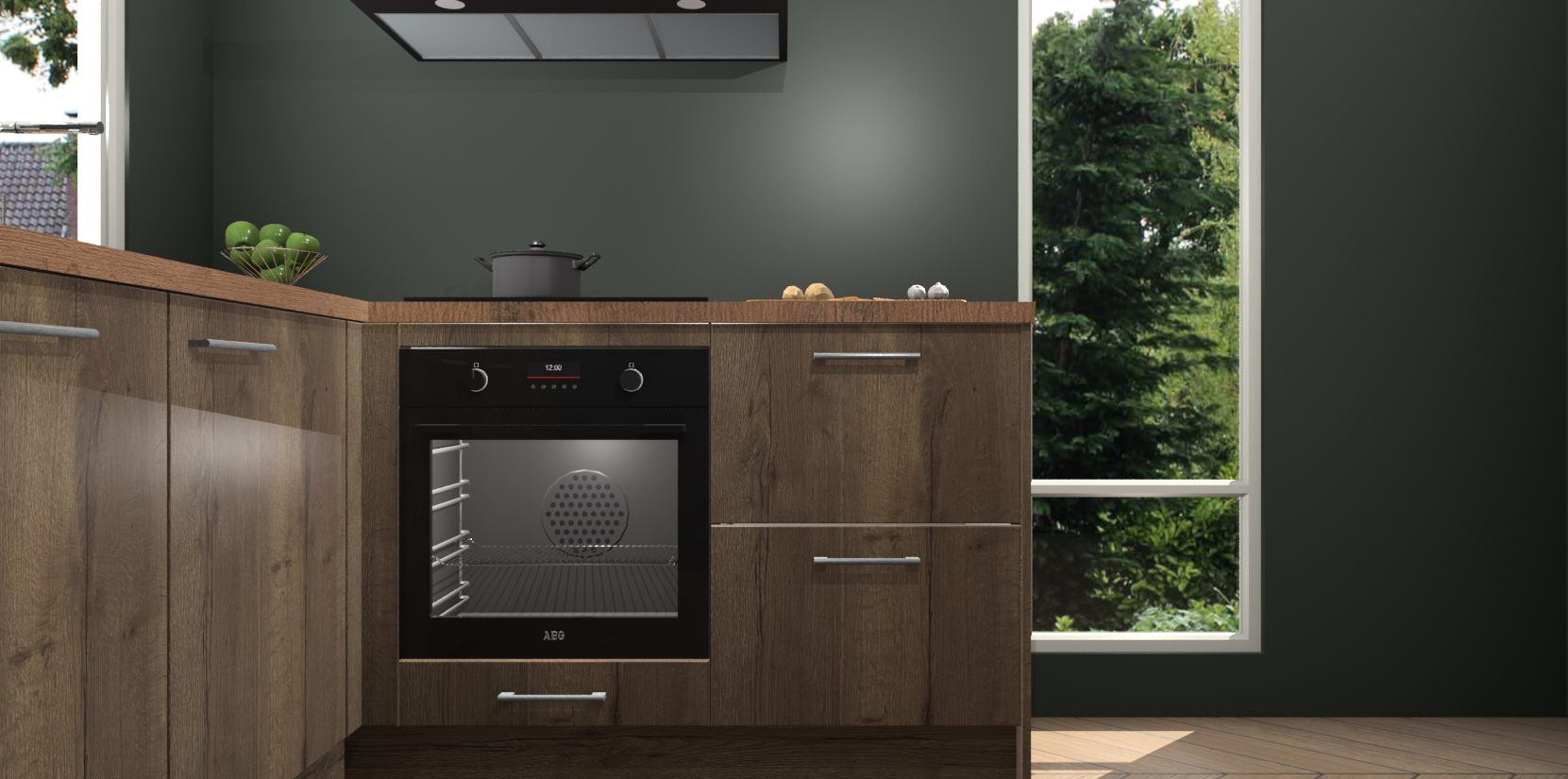 De Chocolade Eiken keuken Phuket heeft alles wat u maar kunt wensen. Niet alleen zijn er softclose deuren, maar ook 5 ingebouwde apparaten: een oven, inductiekookplaat, afzuigkap, vaatwasser en koelkast - waarbij u later gemakkelijk naar het AEG merk, van inductiekookplaat naar kookplaat met geïntegreerde afzuiging of van oven naar combimagnetron kunt upgraden. Dat alles tegen een vast laag tarief! Bovendien geeft de Chocolade Eiken keuken Phuket supersnelle levering van 7 weken. Echt iets voor u als u er niet op wilt wachten om het resultaat te zien in eigen keuken!