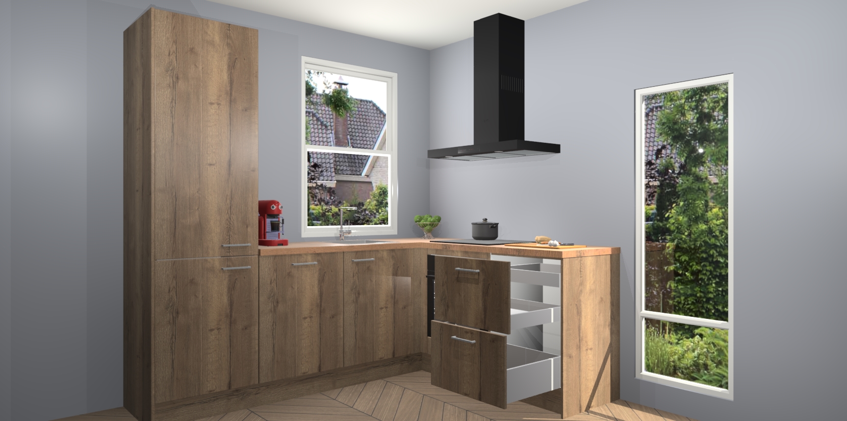- Bij een hoekwerkblad zijn de hoeken in gevreesd en op maat gemaakt