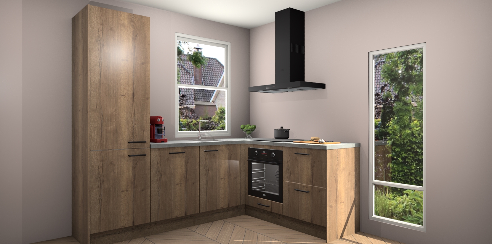 De prachtige Chocolade Eiken keuken Phuket is de perfecte keuze als u op zoek bent naar een moderne hoekkeuken met alle luxe en comfort die u kunt verwachten! De uitstraling in het houtlook-design draagt bij aan de warme sfeer die u nu al voelt wanneer u er naar kijkt. Heeft u genoeg van ouderwetse keukens? Probeer dan direct deze moderne, mooie hoekkeukens en laat iedereen verbluft achter!