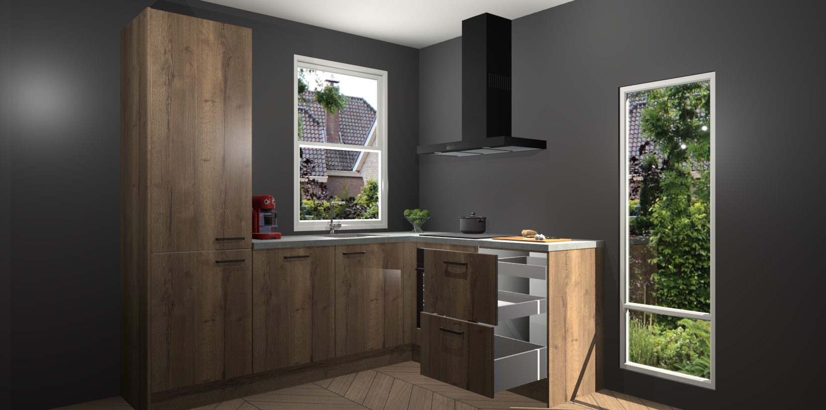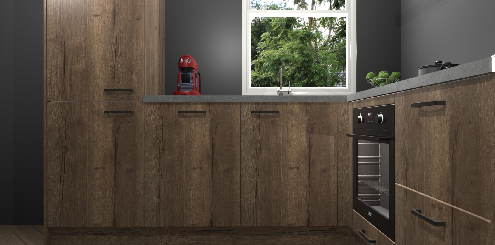 De prachtige Chocolade Eiken keuken Phuket is de perfecte keuze als u op zoek bent naar een moderne hoekkeuken met alle luxe en comfort die u kunt verwachten! De uitstraling in het houtlook-design draagt bij aan de warme sfeer die u nu al voelt wanneer u er naar kijkt. Heeft u genoeg van ouderwetse keukens? Probeer dan direct deze moderne, mooie hoekkeukens en laat iedereen verbluft achter!