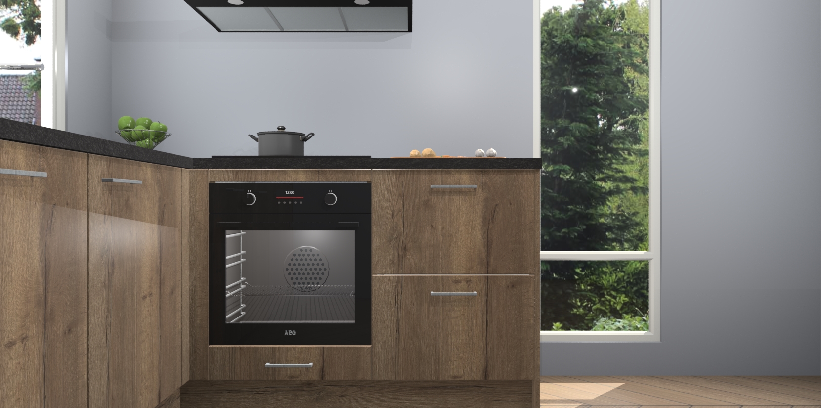 De Chocolade Eiken keuken Phuket heeft alles wat u maar kunt wensen. Niet alleen zijn er softclose deuren, maar ook 5 ingebouwde apparaten: een oven, inductiekookplaat, afzuigkap, vaatwasser en koelkast - waarbij u later gemakkelijk naar het AEG merk, van inductiekookplaat naar kookplaat met geïntegreerde afzuiging of van oven naar combimagnetron kunt upgraden. Dat alles tegen een vast laag tarief! Bovendien geeft de Chocolade Eiken keuken Phuket supersnelle levering van 7 weken. Echt iets voor u als u er niet op wilt wachten om het resultaat te zien in eigen keuken!