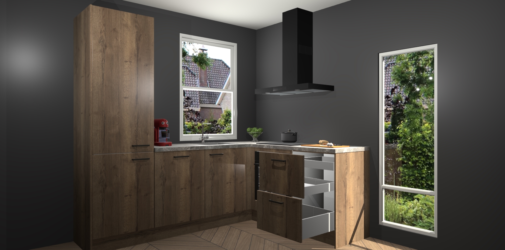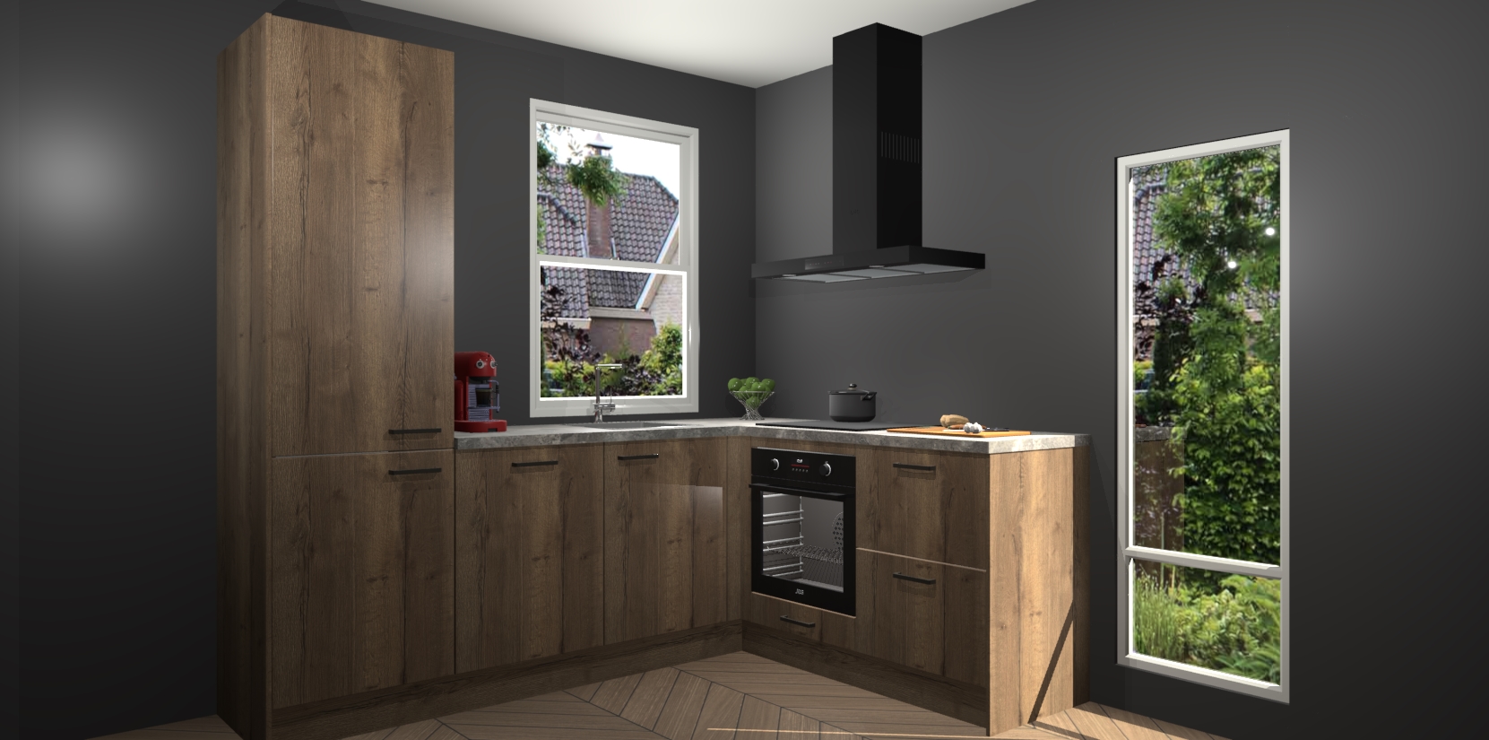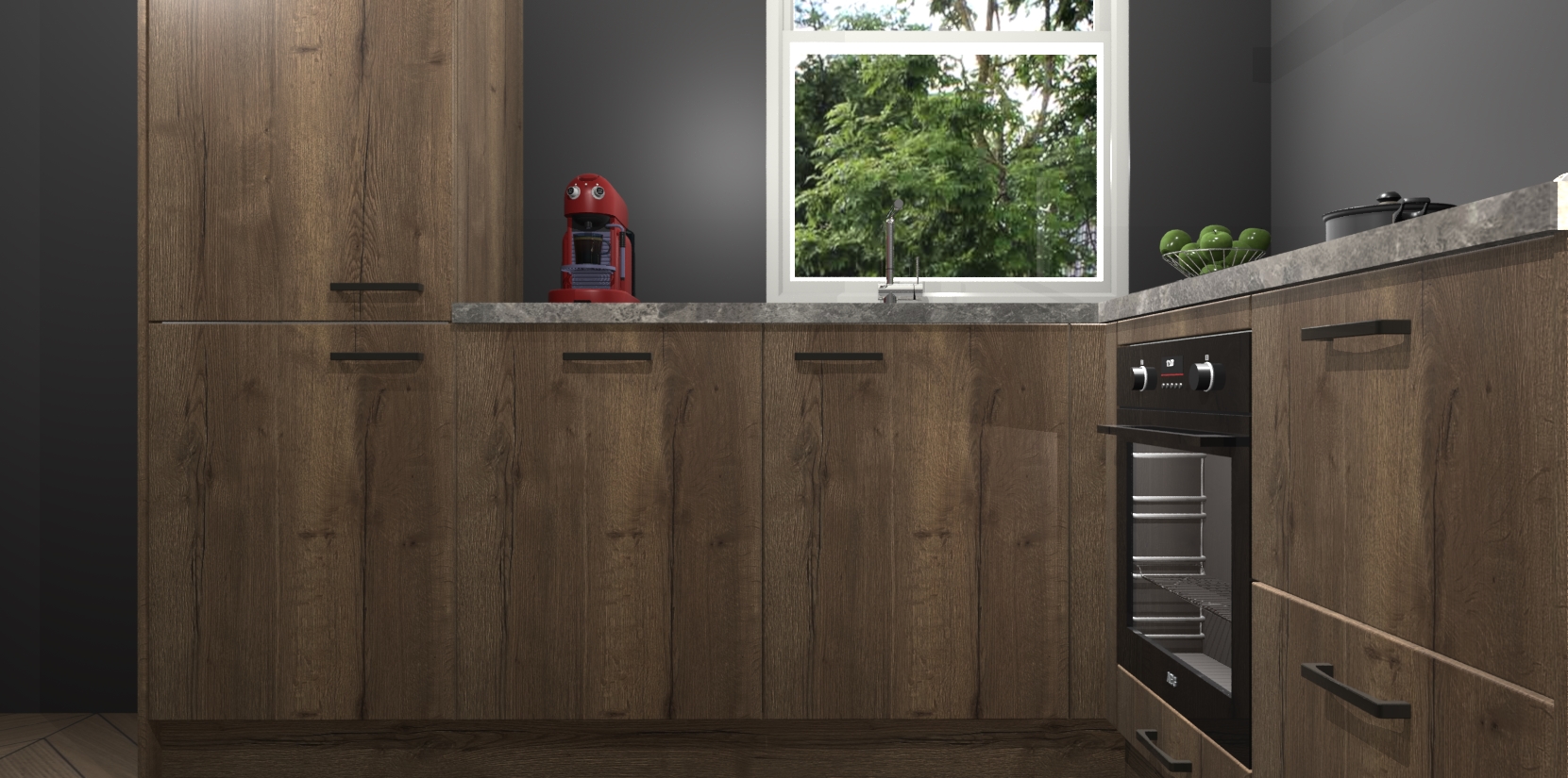 De prachtige Chocolade Eiken keuken Phuket is de perfecte keuze als u op zoek bent naar een moderne hoekkeuken met alle luxe en comfort die u kunt verwachten! De uitstraling in het houtlook-design draagt bij aan de warme sfeer die u nu al voelt wanneer u er naar kijkt. Heeft u genoeg van ouderwetse keukens? Probeer dan direct deze moderne, mooie hoekkeukens en laat iedereen verbluft achter!