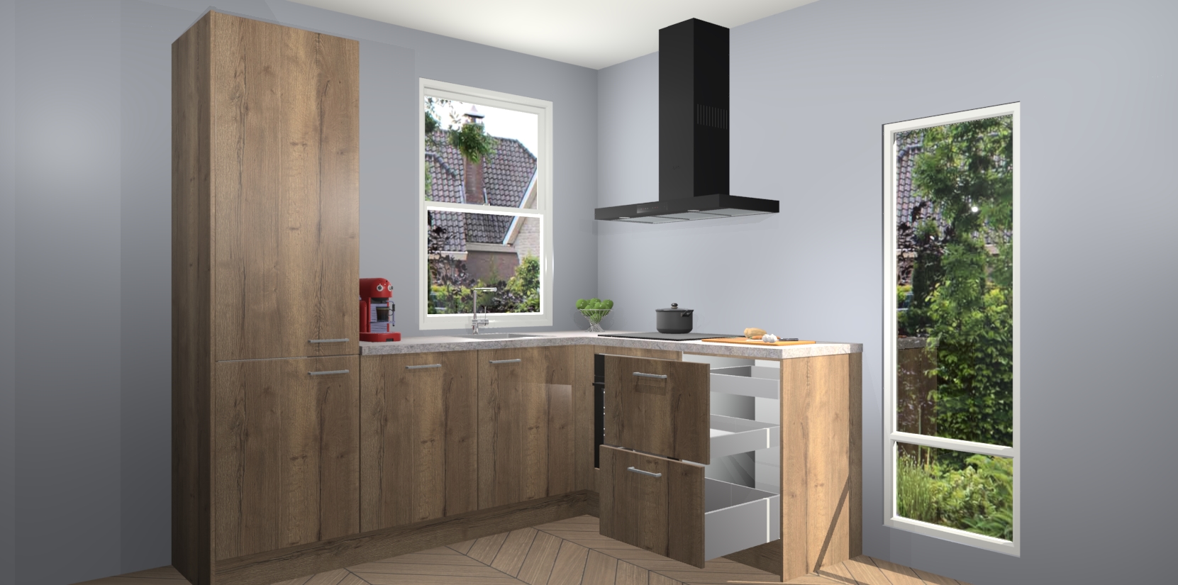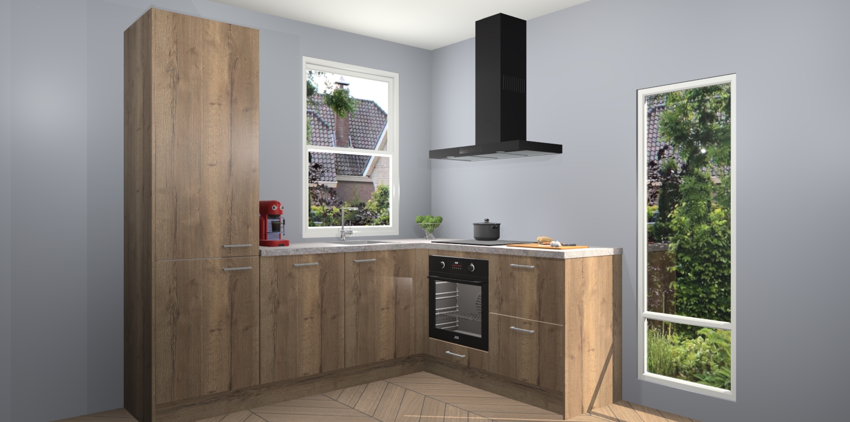 De prachtige Chocolade Eiken keuken Phuket is de perfecte keuze als u op zoek bent naar een moderne hoekkeuken met alle luxe en comfort die u kunt verwachten! De uitstraling in het houtlook-design draagt bij aan de warme sfeer die u nu al voelt wanneer u er naar kijkt. Heeft u genoeg van ouderwetse keukens? Probeer dan direct deze moderne, mooie hoekkeukens en laat iedereen verbluft achter!