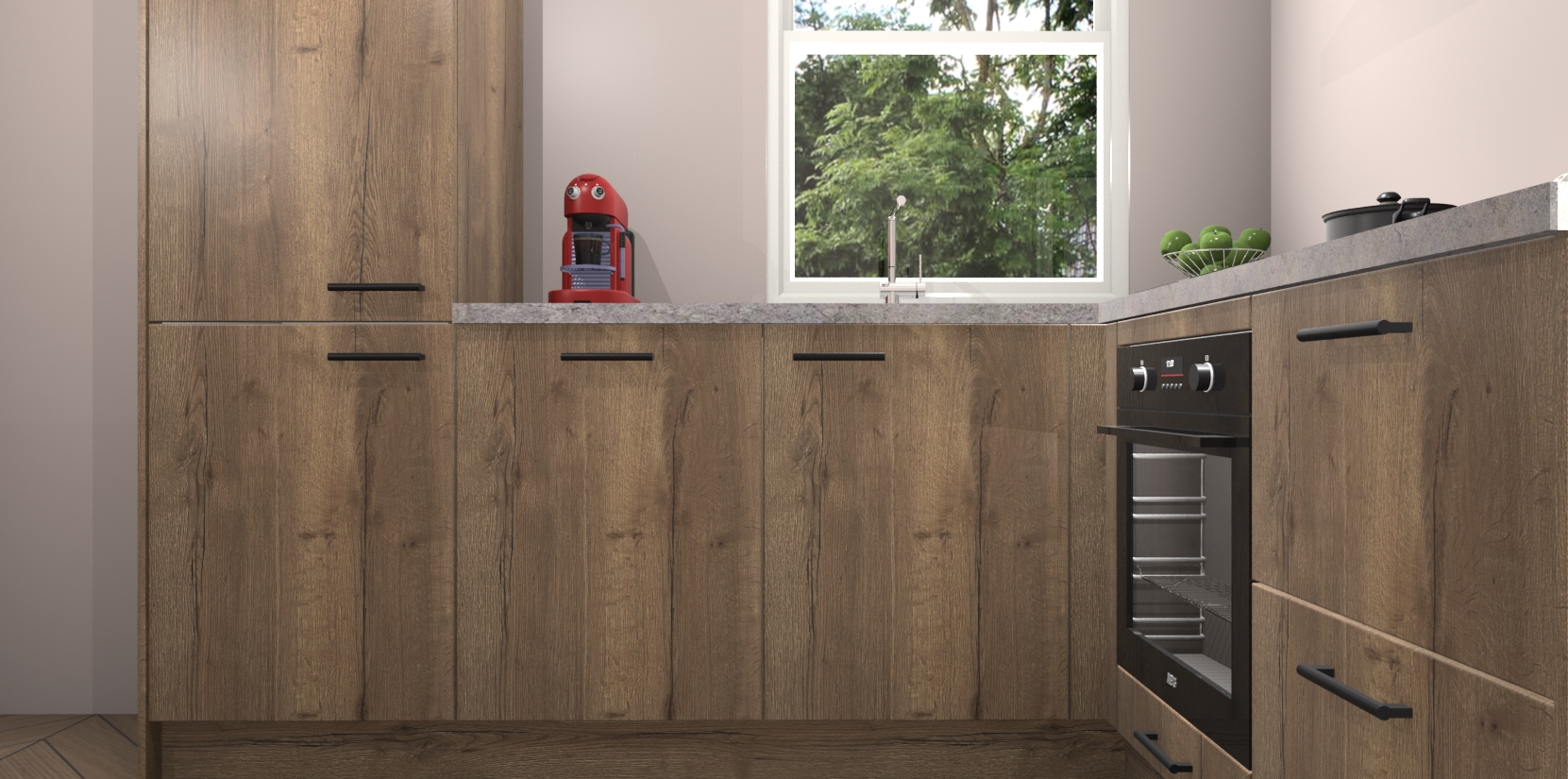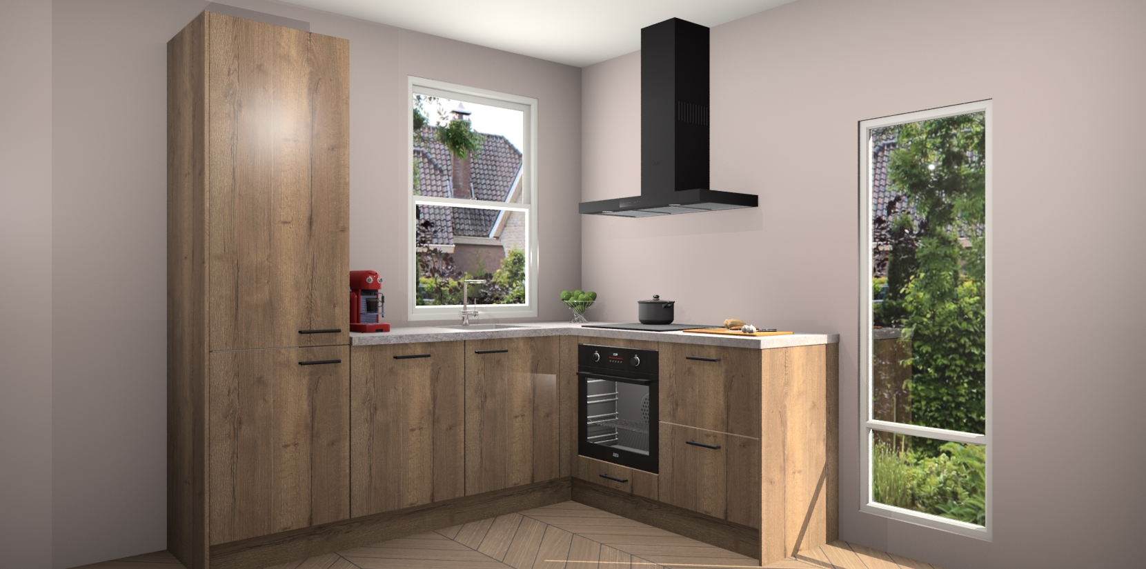 De prachtige Chocolade Eiken keuken Phuket is de perfecte keuze als u op zoek bent naar een moderne hoekkeuken met alle luxe en comfort die u kunt verwachten! De uitstraling in het houtlook-design draagt bij aan de warme sfeer die u nu al voelt wanneer u er naar kijkt. Heeft u genoeg van ouderwetse keukens? Probeer dan direct deze moderne, mooie hoekkeukens en laat iedereen verbluft achter!