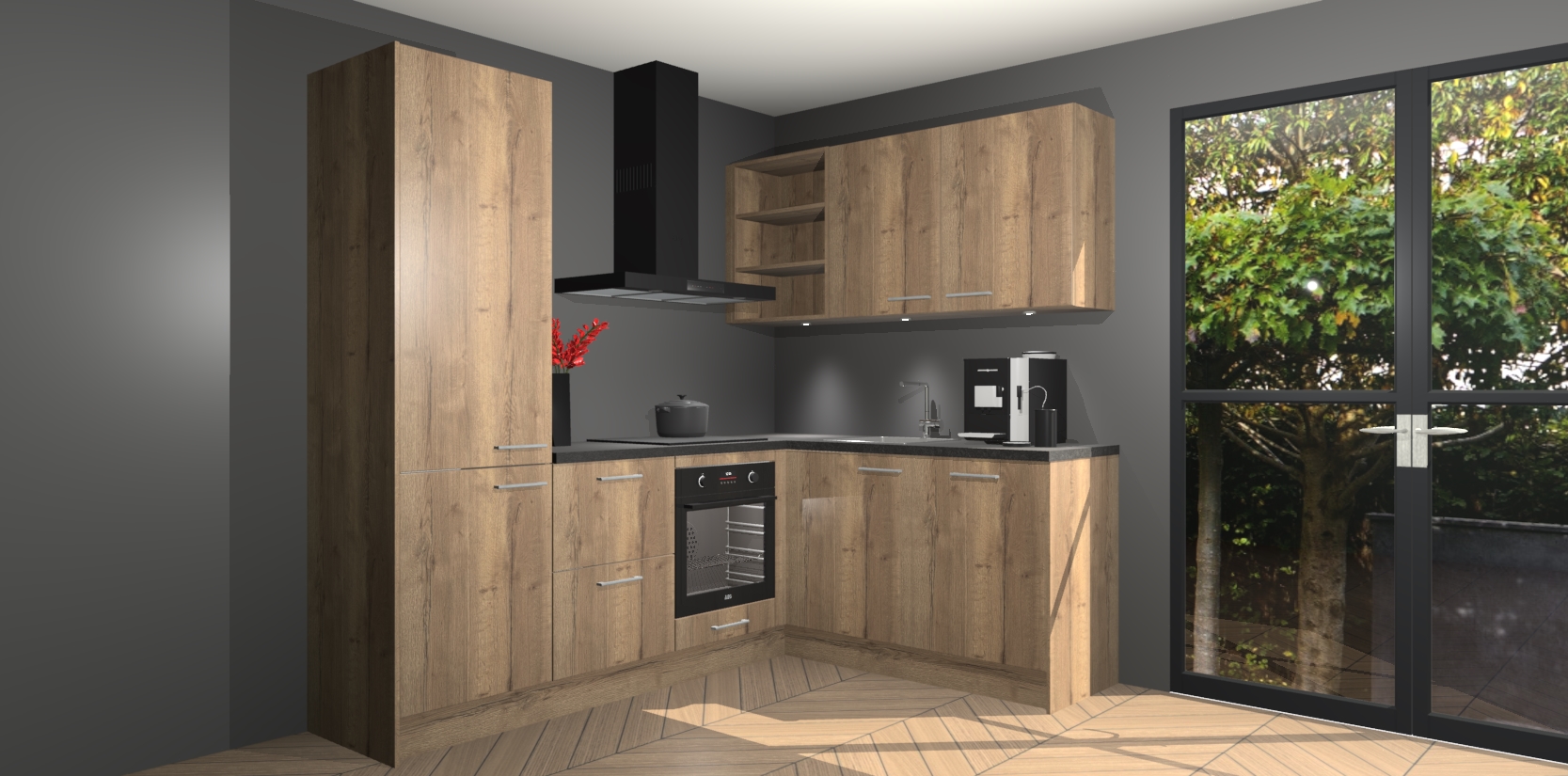 Wauw, dit is de Chocolade Eiken keuken Pilsen! U kunt gerust zeggen dat u elegantie combineert met functionaliteit met deze keuken. Met een modern en chique ontwerp is de keuken precies wat u nodig heeft om uw ruimte te verfraaien. De binnenzijde van de kasten is in dezelfde donkere kleur als de buitenzijde voor een uniforme look, compleet met softclose-kasten die stil sluiten.