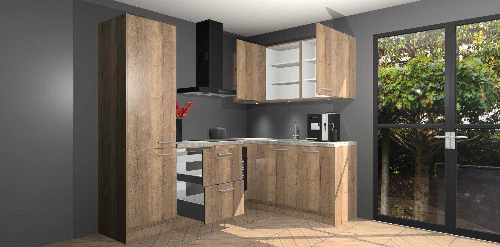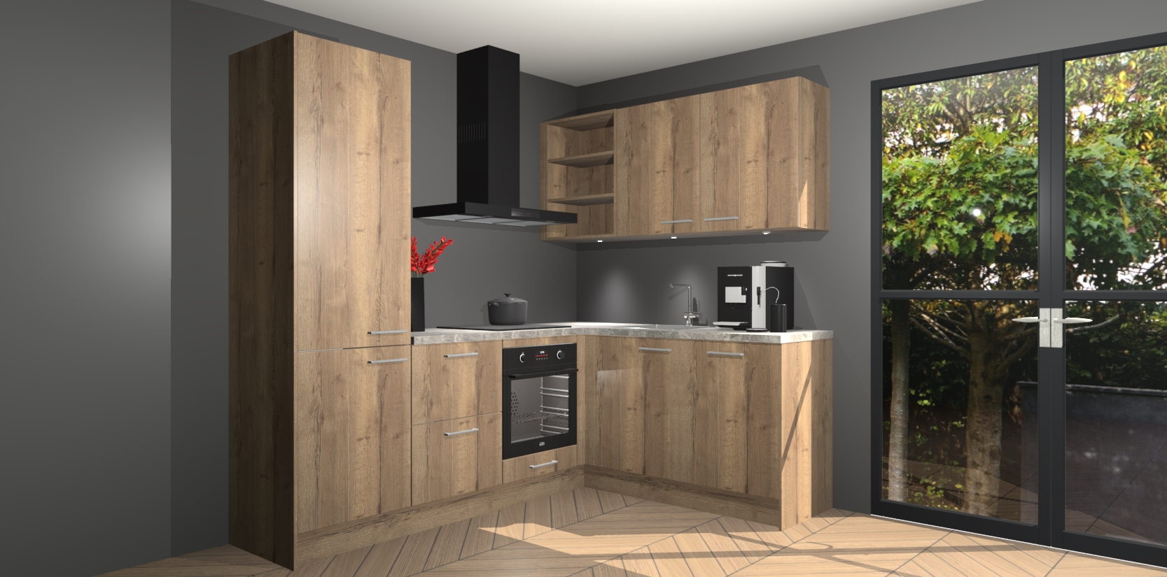 Wauw, dit is de Chocolade Eiken keuken Pilsen! U kunt gerust zeggen dat u elegantie combineert met functionaliteit met deze keuken. Met een modern en chique ontwerp is de keuken precies wat u nodig heeft om uw ruimte te verfraaien. De binnenzijde van de kasten is in dezelfde donkere kleur als de buitenzijde voor een uniforme look, compleet met softclose-kasten die stil sluiten.