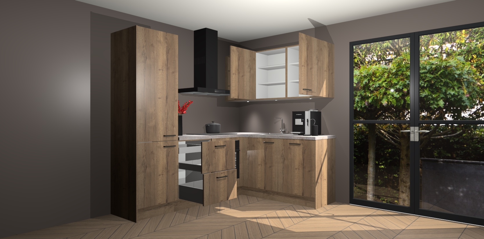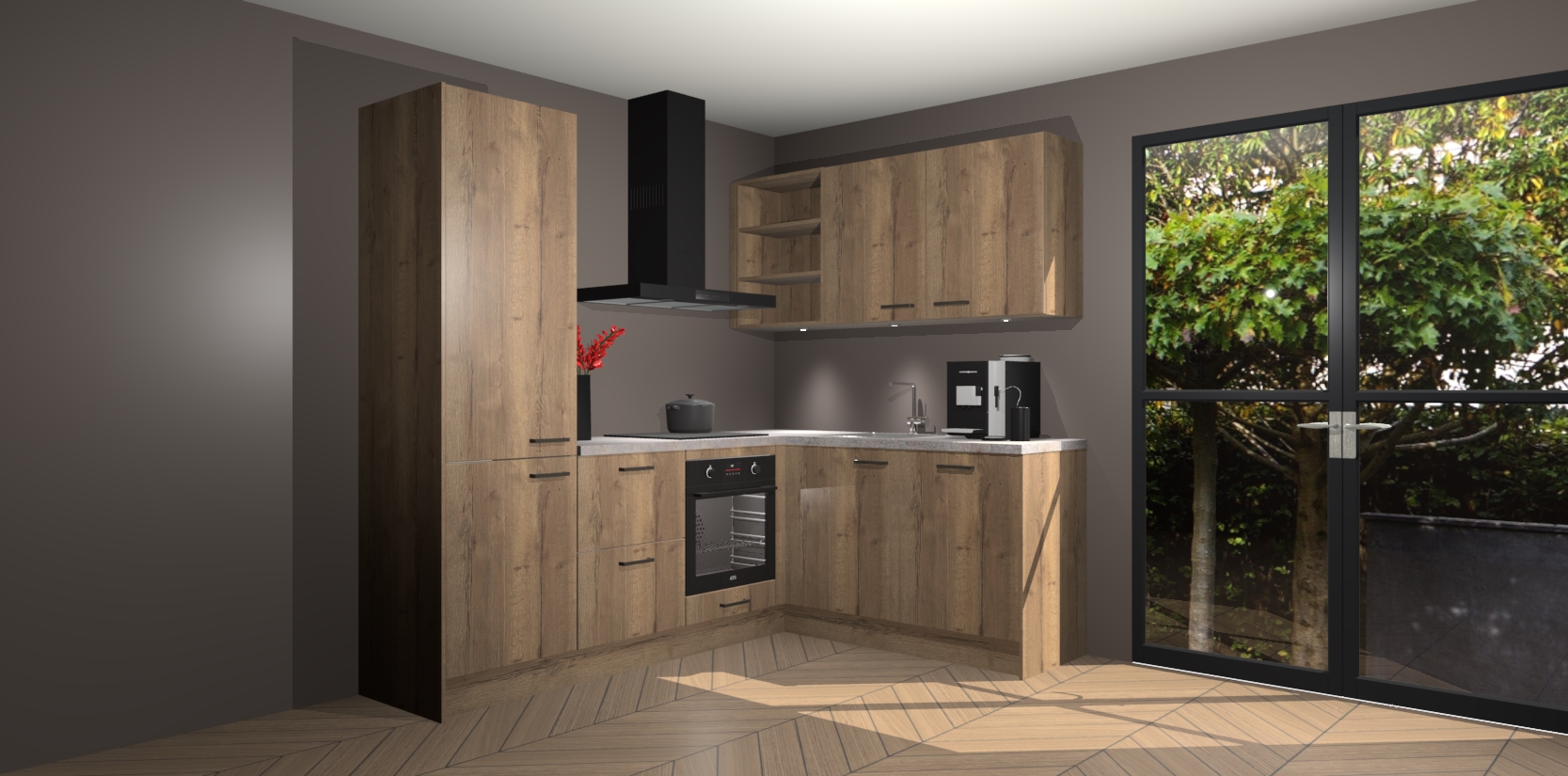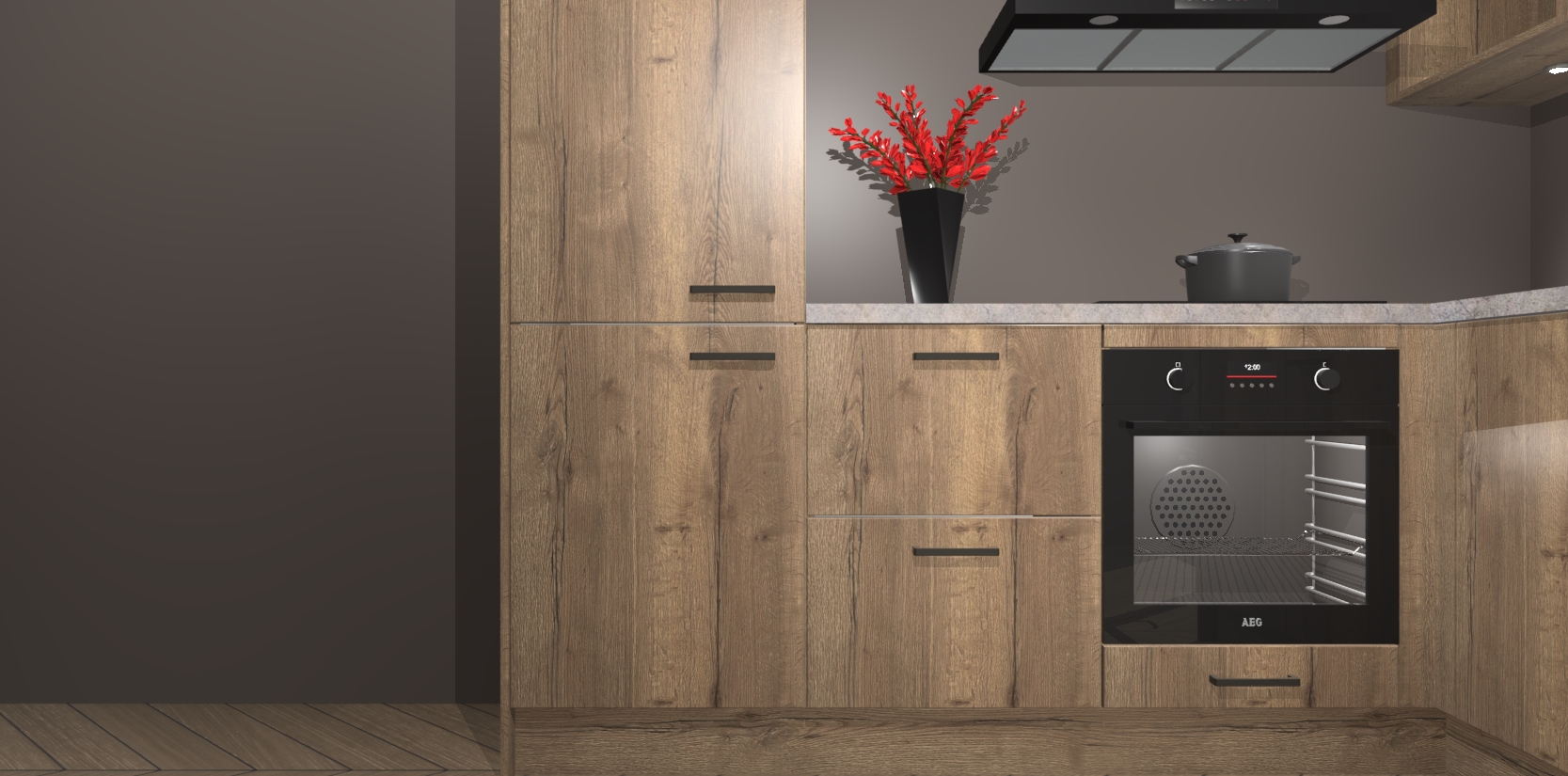 Wauw, dit is de Chocolade Eiken keuken Pilsen! U kunt gerust zeggen dat u elegantie combineert met functionaliteit met deze keuken. Met een modern en chique ontwerp is de keuken precies wat u nodig heeft om uw ruimte te verfraaien. De binnenzijde van de kasten is in dezelfde donkere kleur als de buitenzijde voor een uniforme look, compleet met softclose-kasten die stil sluiten.