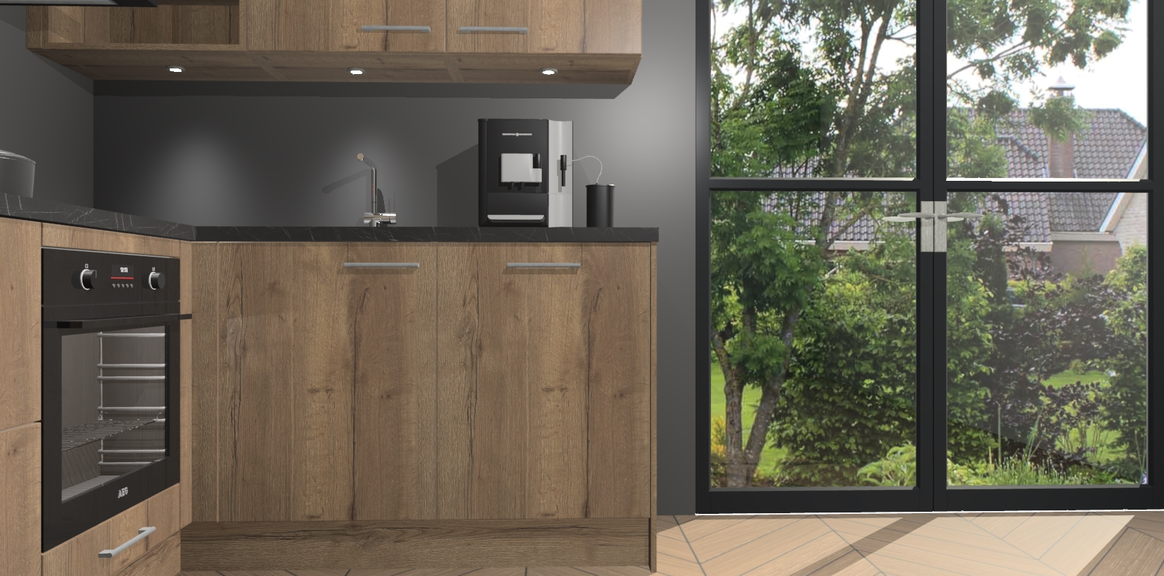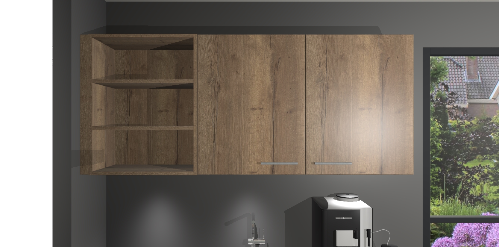 Wauw, dit is de Chocolade Eiken keuken Pilsen! U kunt gerust zeggen dat u elegantie combineert met functionaliteit met deze keuken. Met een modern en chique ontwerp is de keuken precies wat u nodig heeft om uw ruimte te verfraaien. De binnenzijde van de kasten is in dezelfde donkere kleur als de buitenzijde voor een uniforme look, compleet met softclose-kasten die stil sluiten.