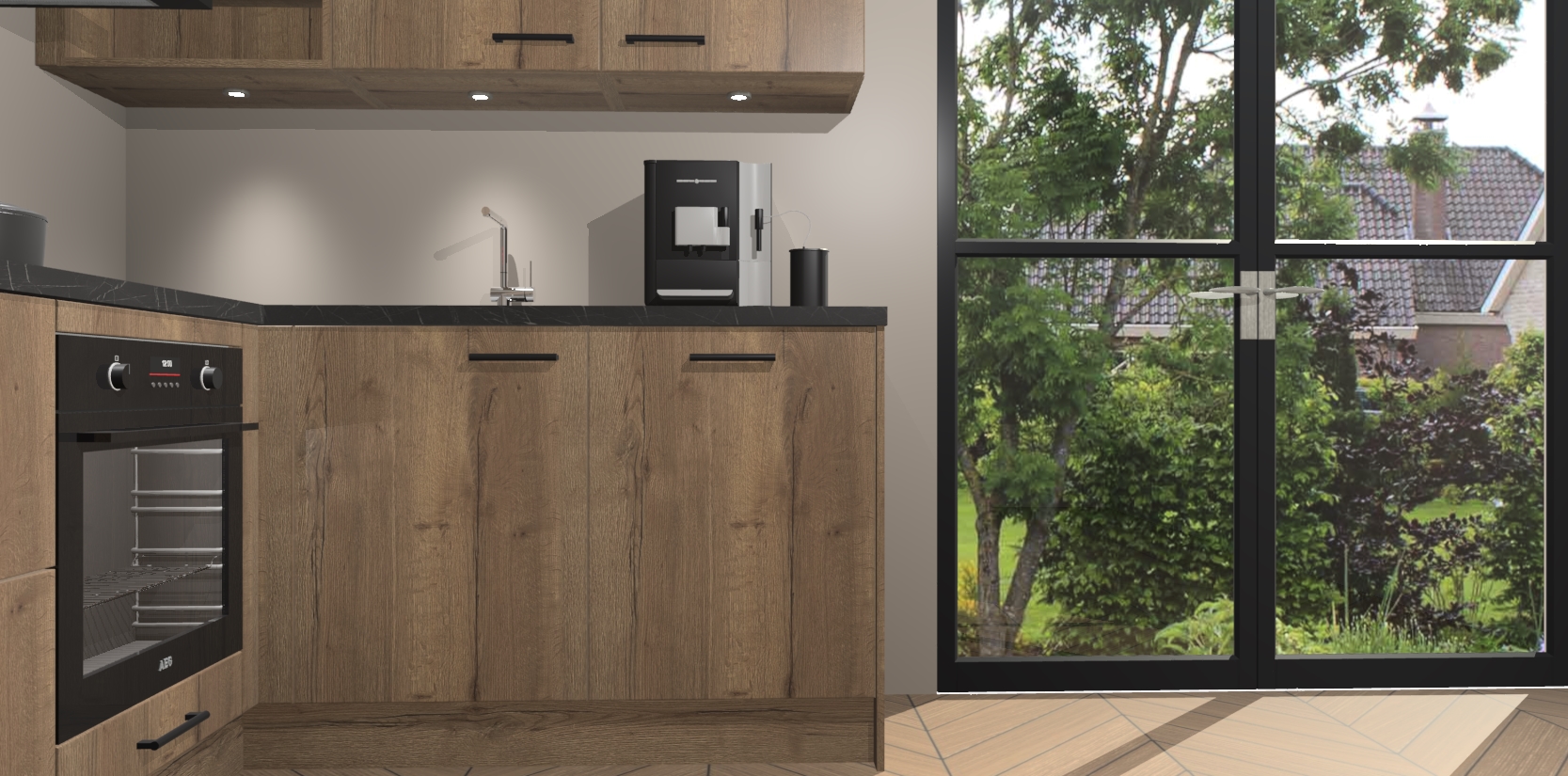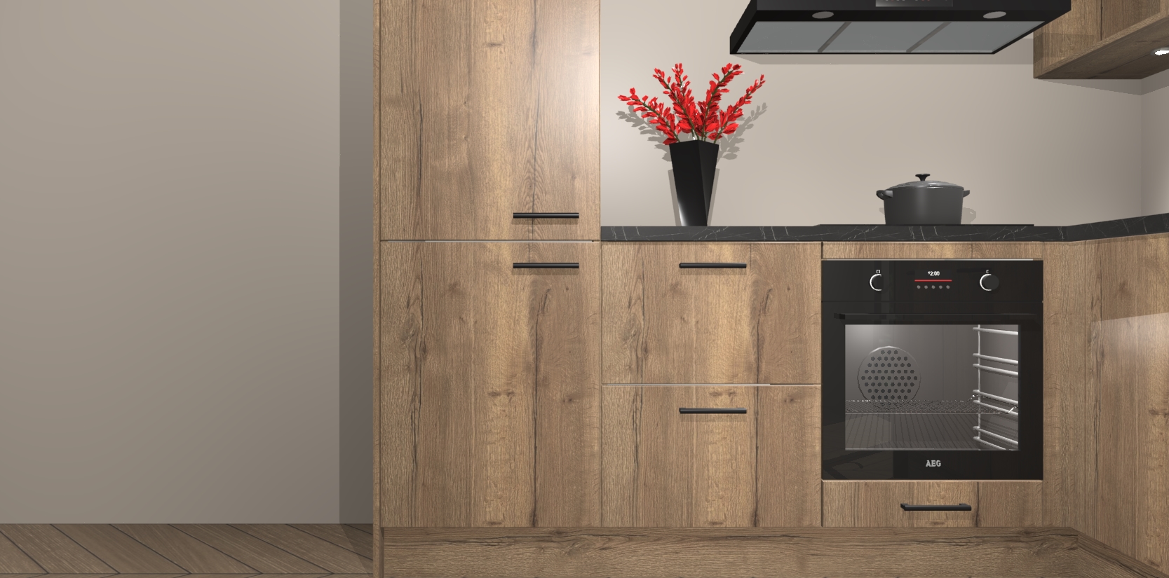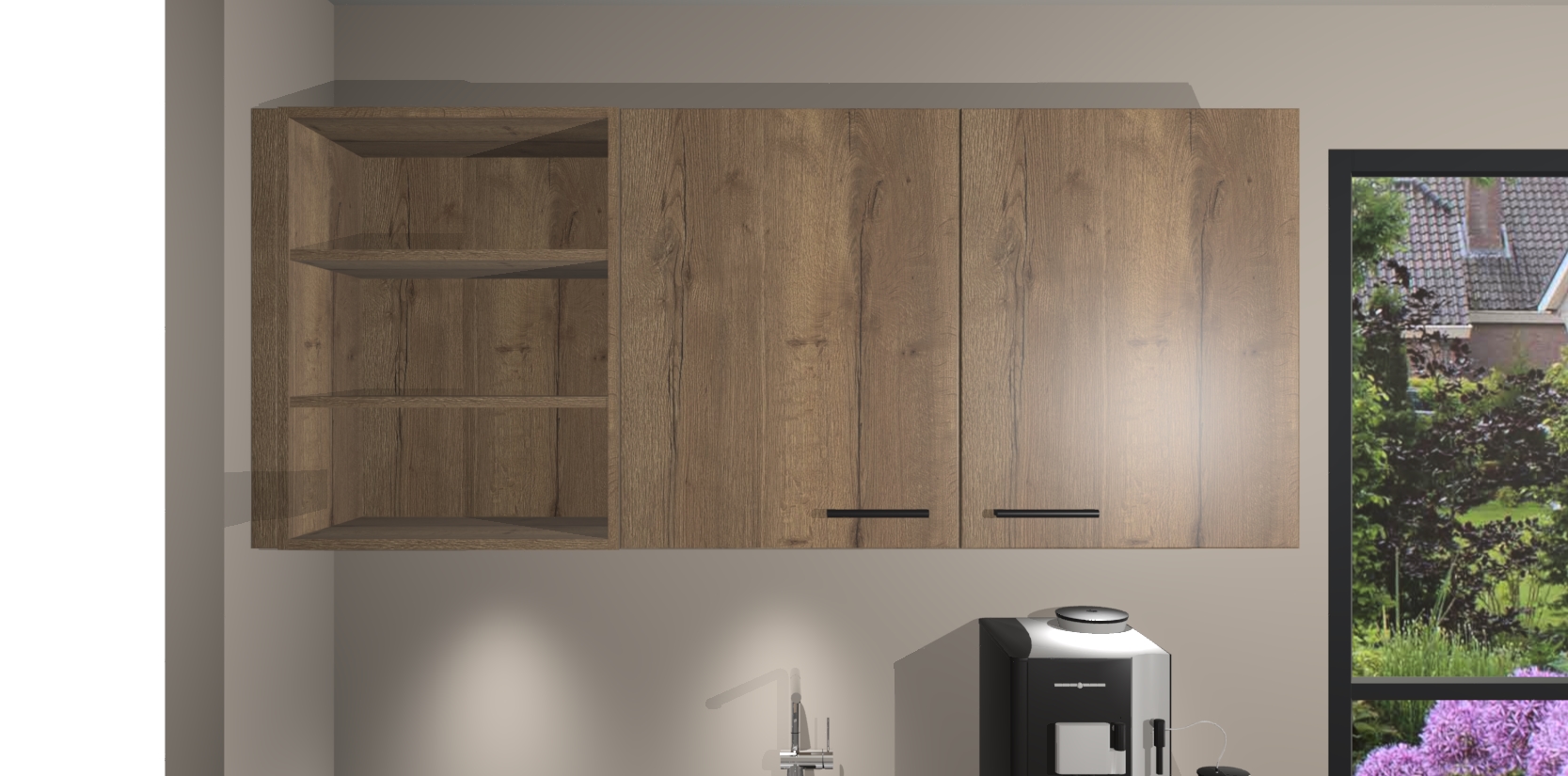 Wauw, dit is de Chocolade Eiken keuken Pilsen! U kunt gerust zeggen dat u elegantie combineert met functionaliteit met deze keuken. Met een modern en chique ontwerp is de keuken precies wat u nodig heeft om uw ruimte te verfraaien. De binnenzijde van de kasten is in dezelfde donkere kleur als de buitenzijde voor een uniforme look, compleet met softclose-kasten die stil sluiten.