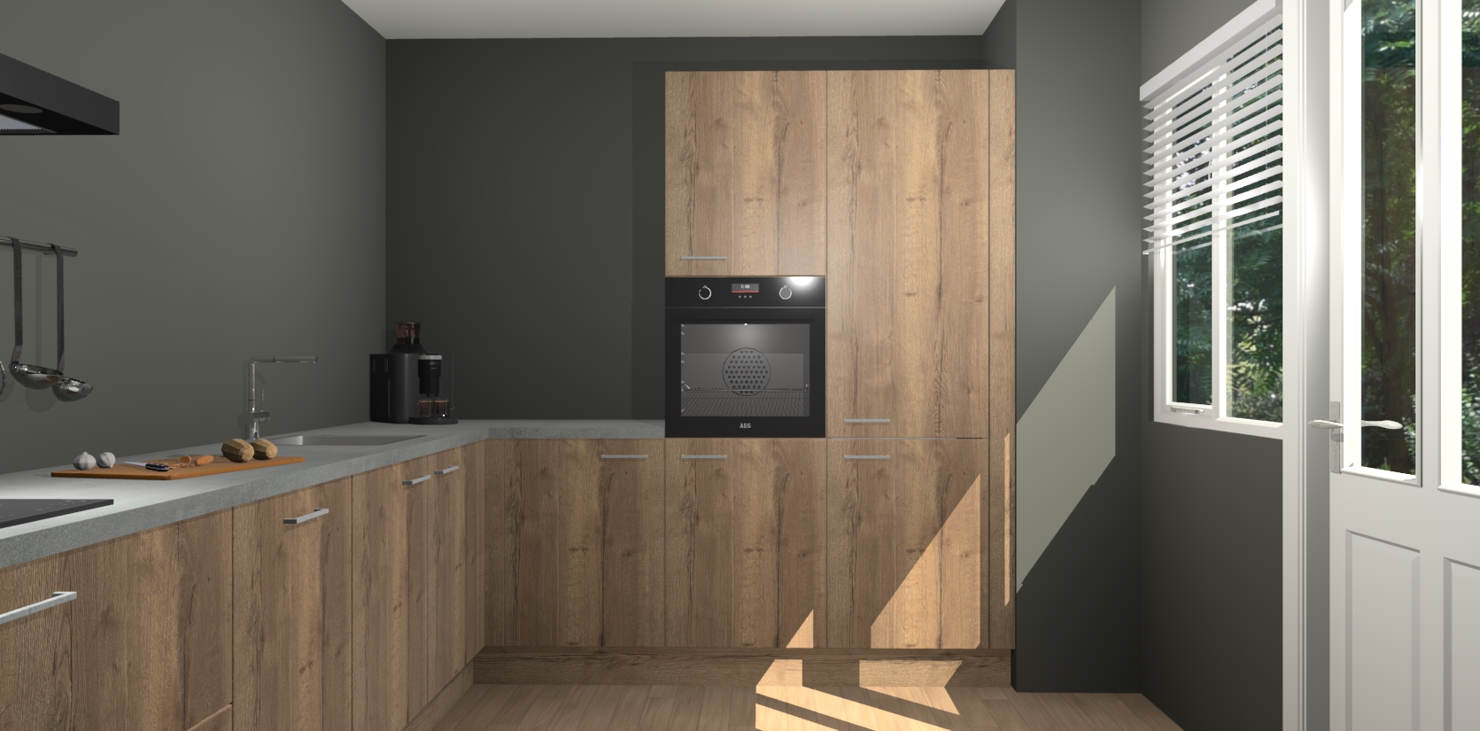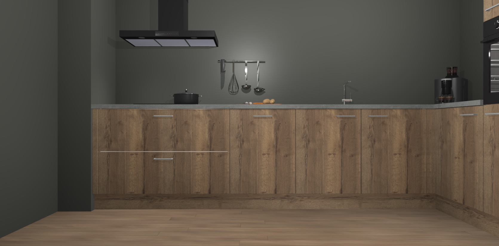 Welkom bij de Chocolade Eiken keuken Portland. Deze prachtige keuken zal de komende jaren het middelpunt van de belangstelling in uw huis zijn. Uitgerust met vijf inbouwapparaten komt u nooit kookgereedschap tekort. Bovendien geeft de warme houtlook elke ruimte een uitnodigende en tijdloze uitstraling.