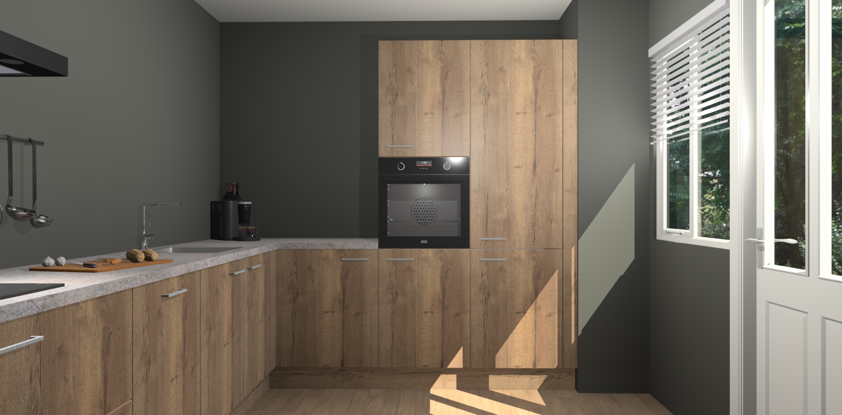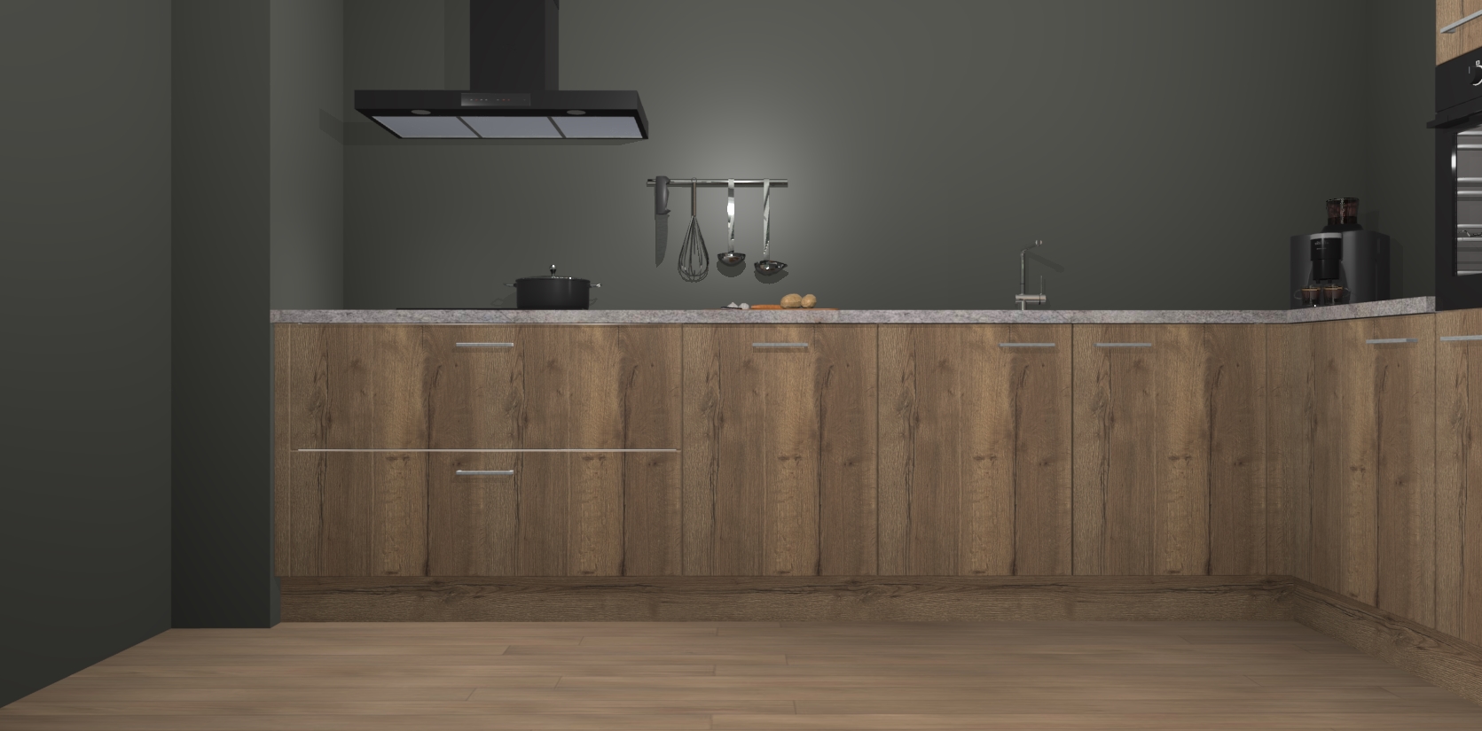 Welkom bij de Chocolade Eiken keuken Portland. Deze prachtige keuken zal de komende jaren het middelpunt van de belangstelling in uw huis zijn. Uitgerust met vijf inbouwapparaten komt u nooit kookgereedschap tekort. Bovendien geeft de warme houtlook elke ruimte een uitnodigende en tijdloze uitstraling.
