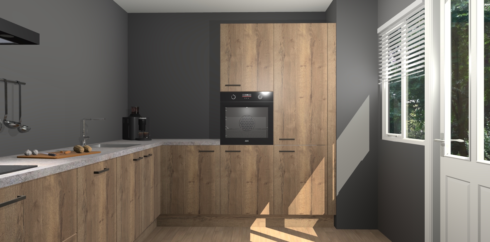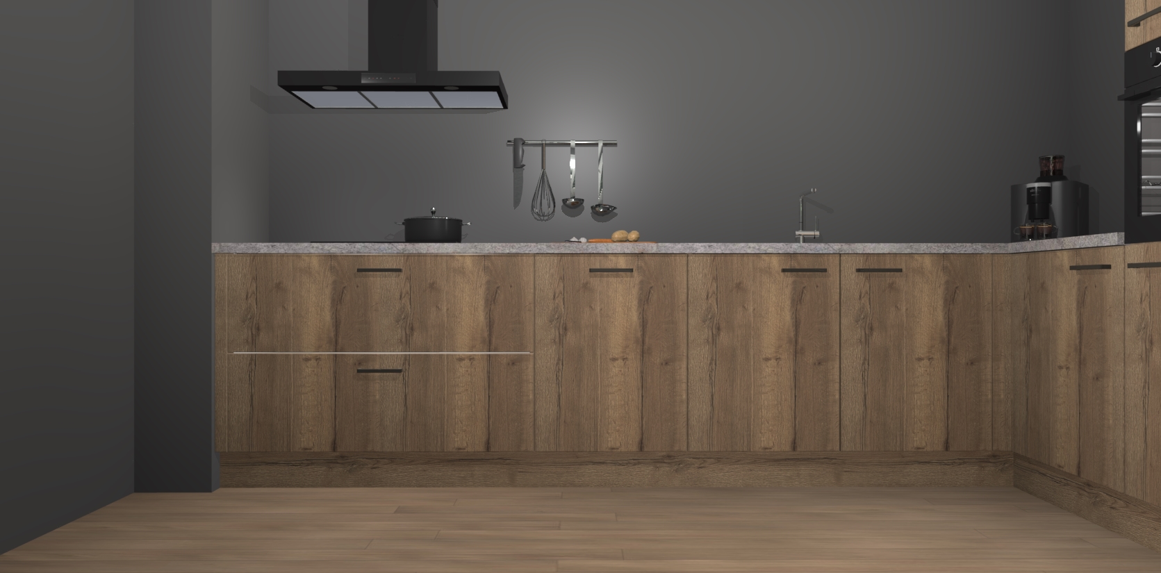 Welkom bij de Chocolade Eiken keuken Portland. Deze prachtige keuken zal de komende jaren het middelpunt van de belangstelling in uw huis zijn. Uitgerust met vijf inbouwapparaten komt u nooit kookgereedschap tekort. Bovendien geeft de warme houtlook elke ruimte een uitnodigende en tijdloze uitstraling.