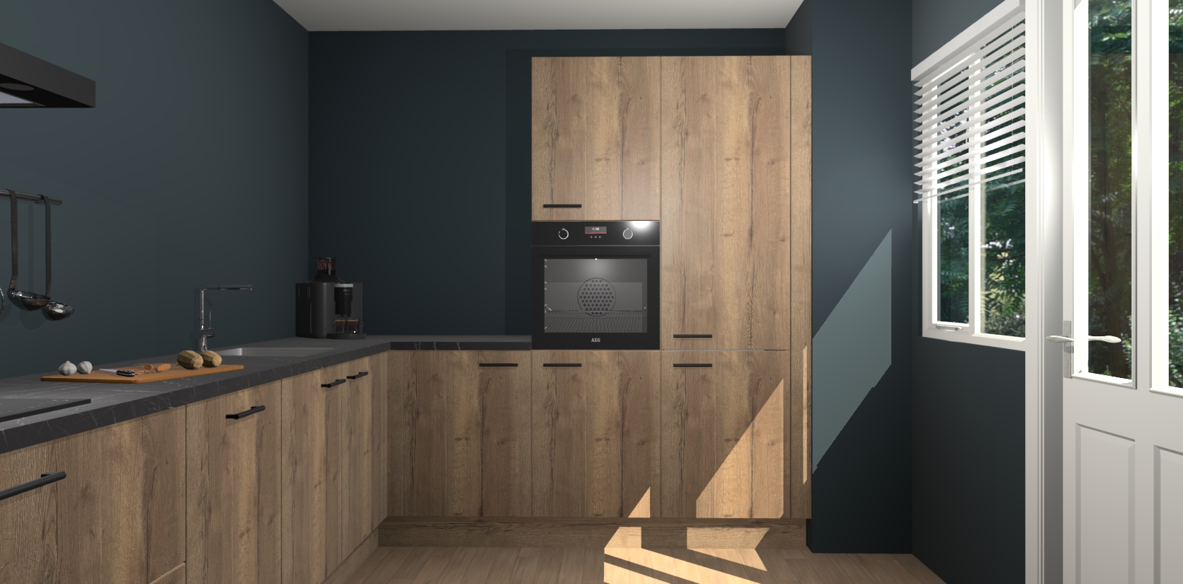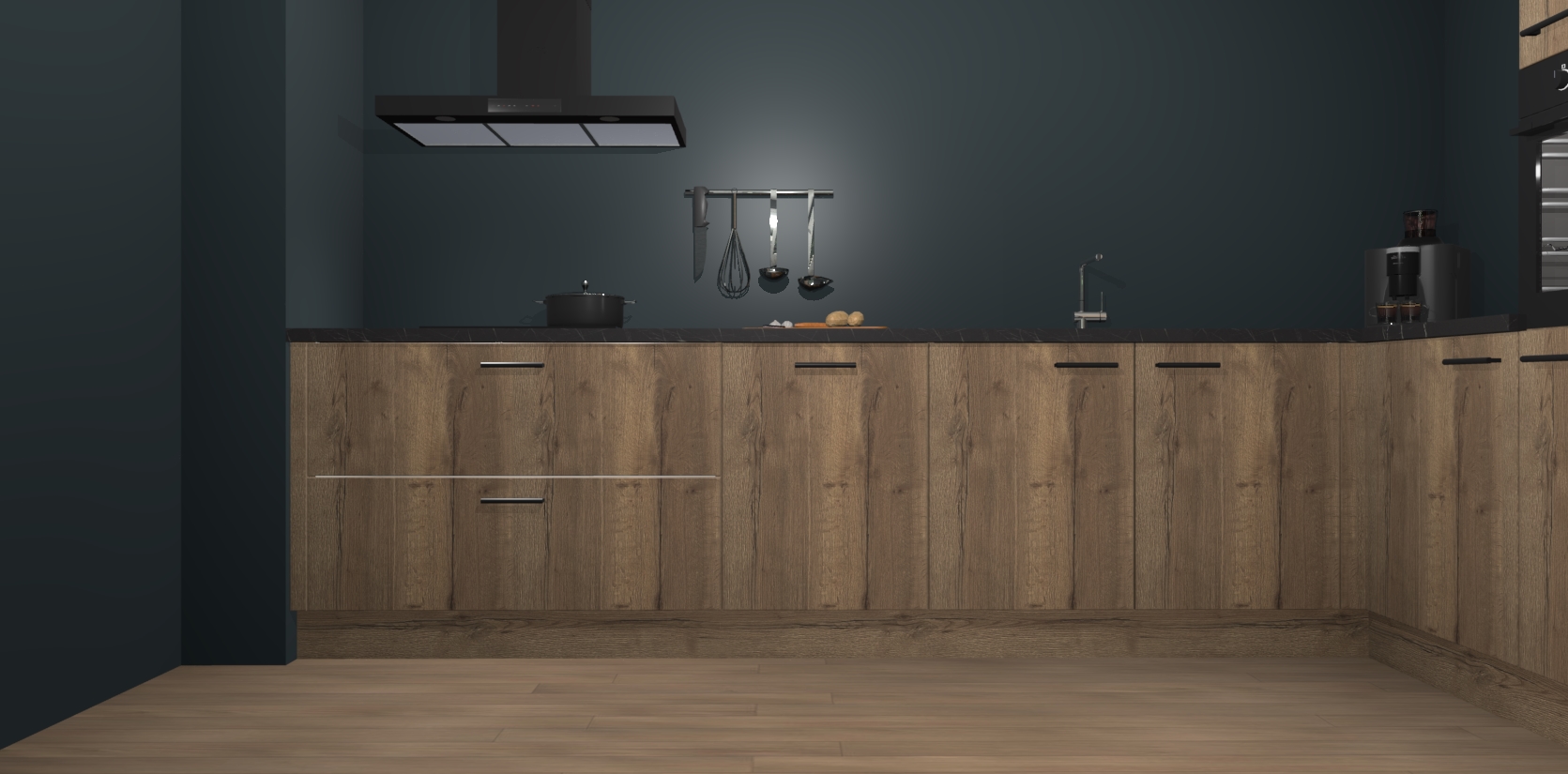 Welkom bij de Chocolade Eiken keuken Portland. Deze prachtige keuken zal de komende jaren het middelpunt van de belangstelling in uw huis zijn. Uitgerust met vijf inbouwapparaten komt u nooit kookgereedschap tekort. Bovendien geeft de warme houtlook elke ruimte een uitnodigende en tijdloze uitstraling.