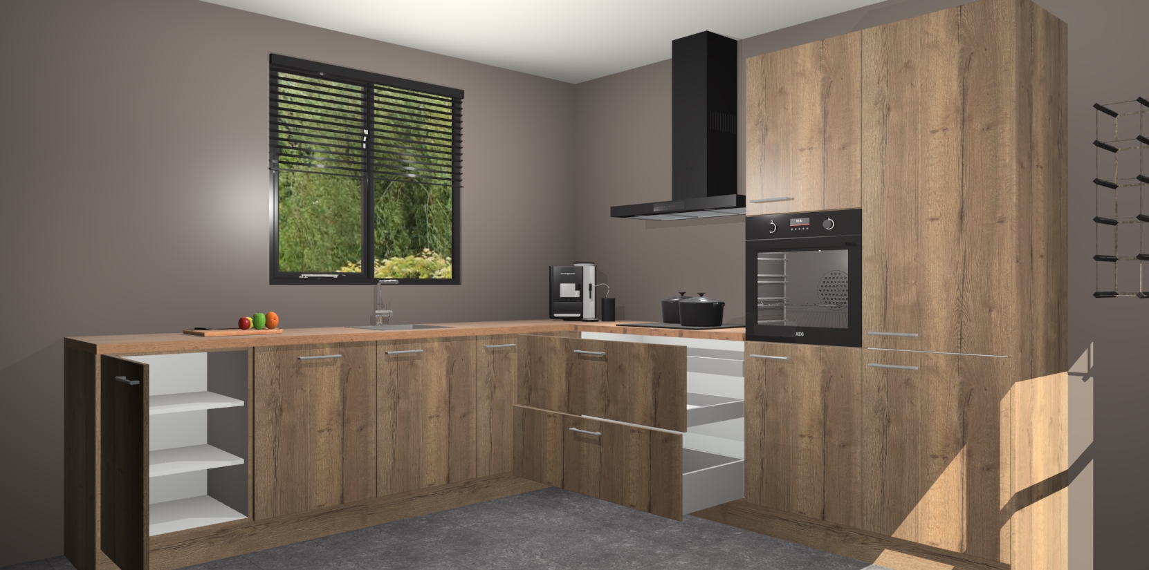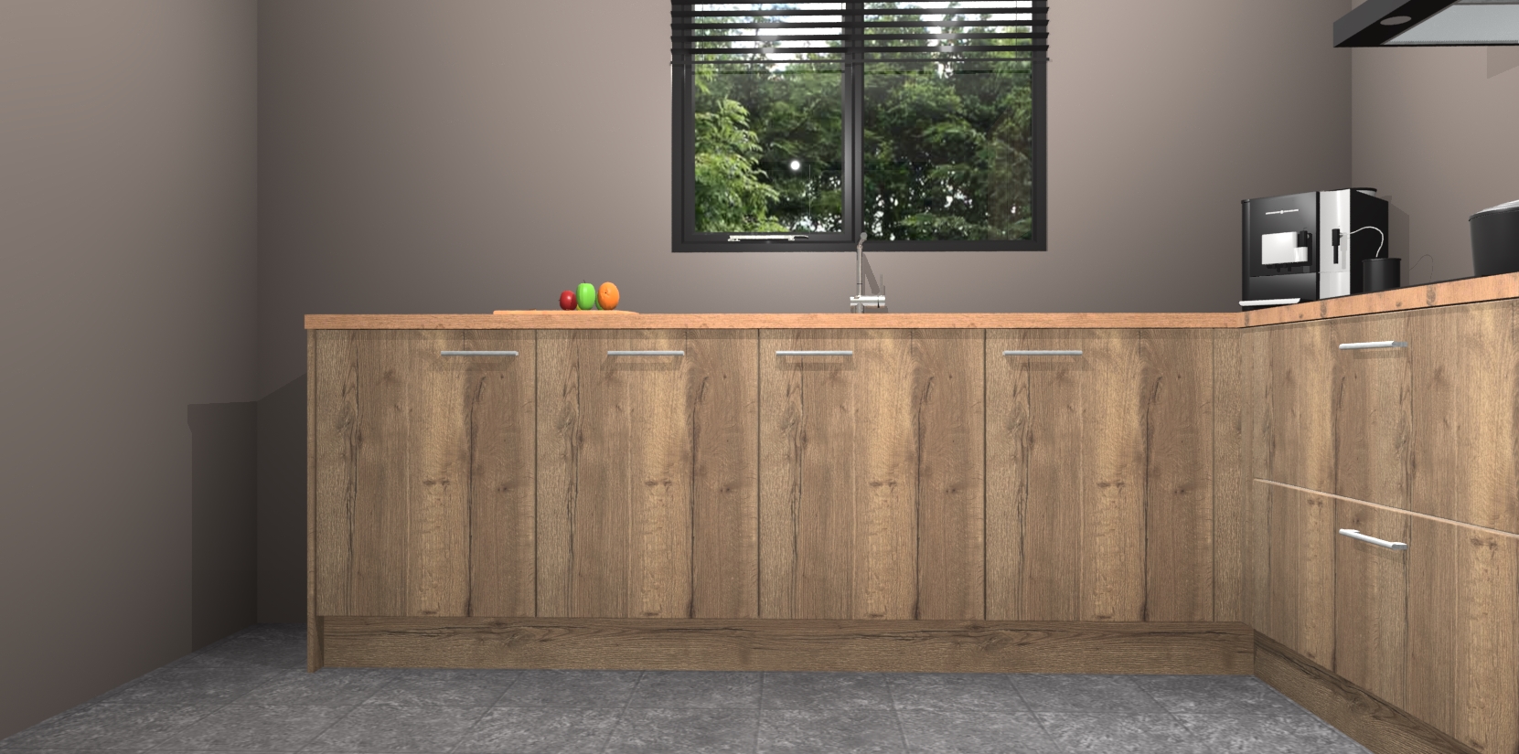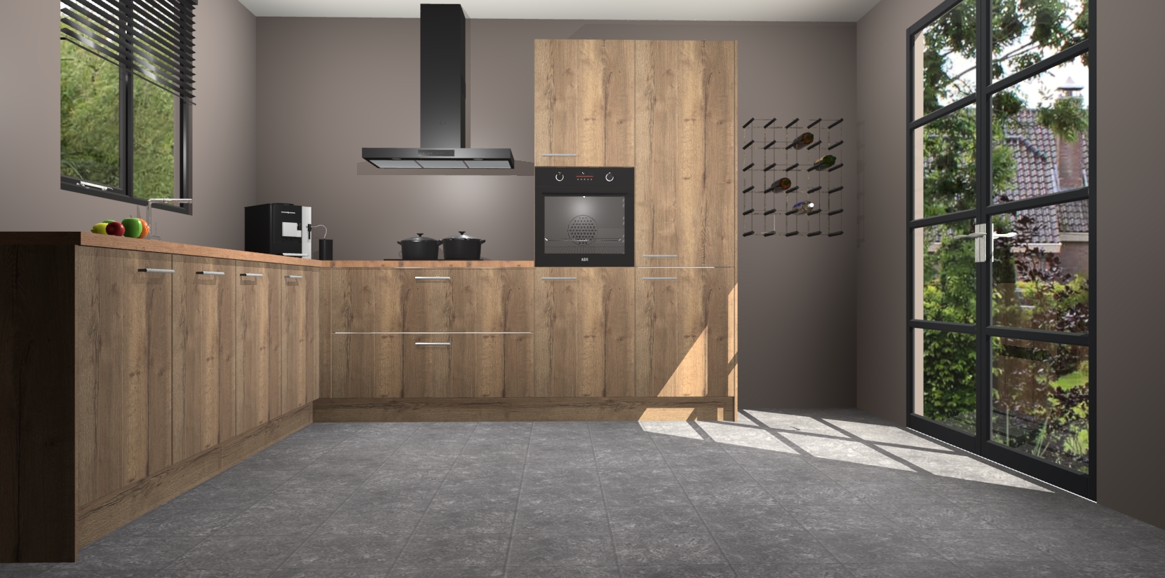 De Chocolade Eiken keuken Porto heeft 5 ingebouwde apparaten - een oven, inductiekookplaat, afzuigkap, vaatwasser en koelkast - waarmee u in een handomdraai heerlijke gerechten bereidt. Soft-close deuren zorgen voor nog meer functionaliteit en gemak. En dit alles voor een onverslaanbaar vaste prijs. En als u nu bestelt, duurt de levering maar 7 weken! Wat nog ongelooflijker is, is dat onze kasten voor gemonteerd worden geleverd.