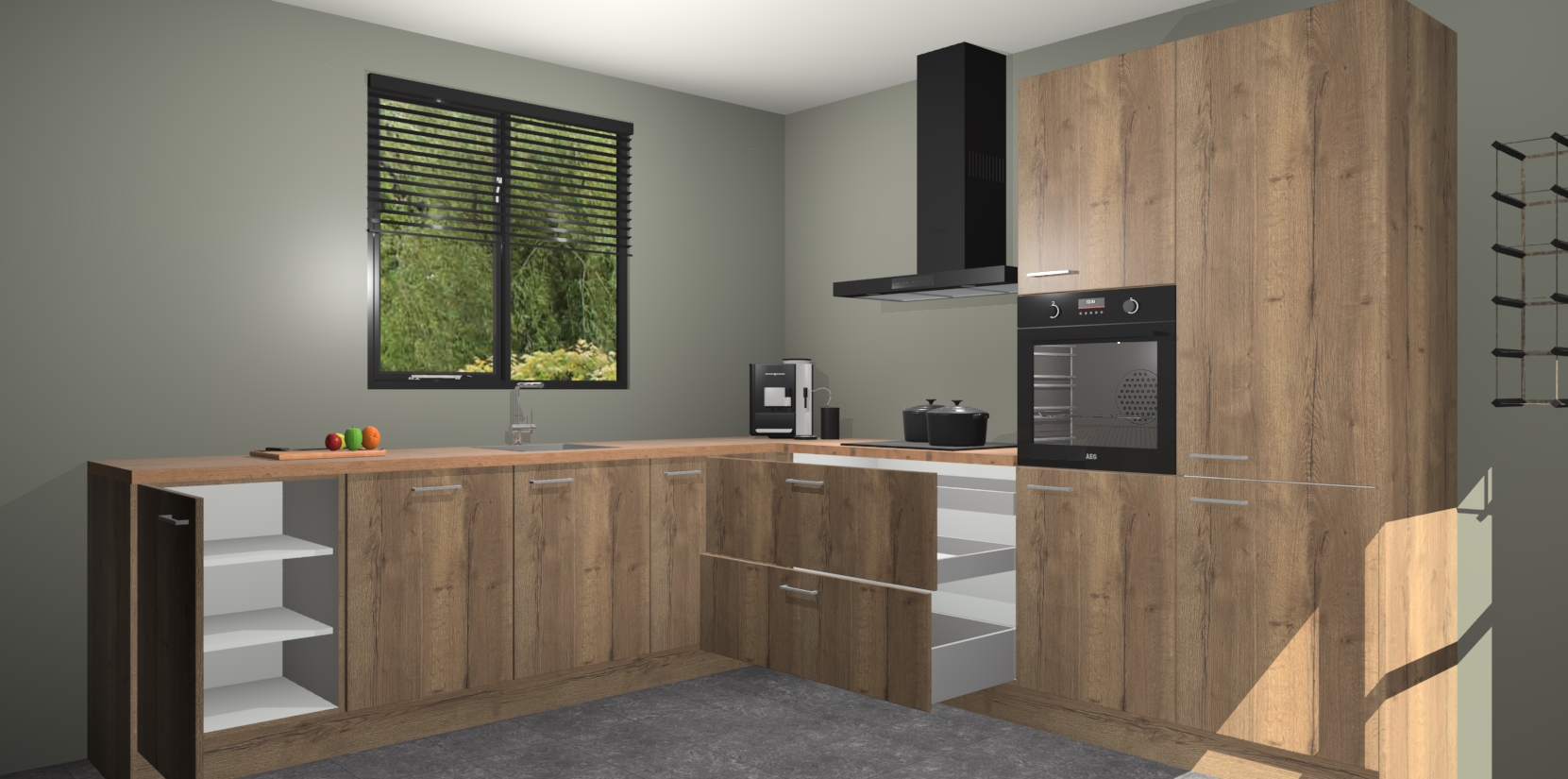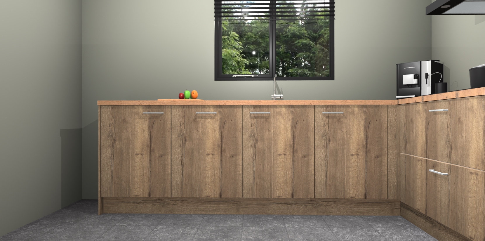 De Chocolade Eiken keuken Porto heeft 5 ingebouwde apparaten - een oven, inductiekookplaat, afzuigkap, vaatwasser en koelkast - waarmee u in een handomdraai heerlijke gerechten bereidt. Soft-close deuren zorgen voor nog meer functionaliteit en gemak. En dit alles voor een onverslaanbaar vaste prijs. En als u nu bestelt, duurt de levering maar 7 weken! Wat nog ongelooflijker is, is dat onze kasten voor gemonteerd worden geleverd.