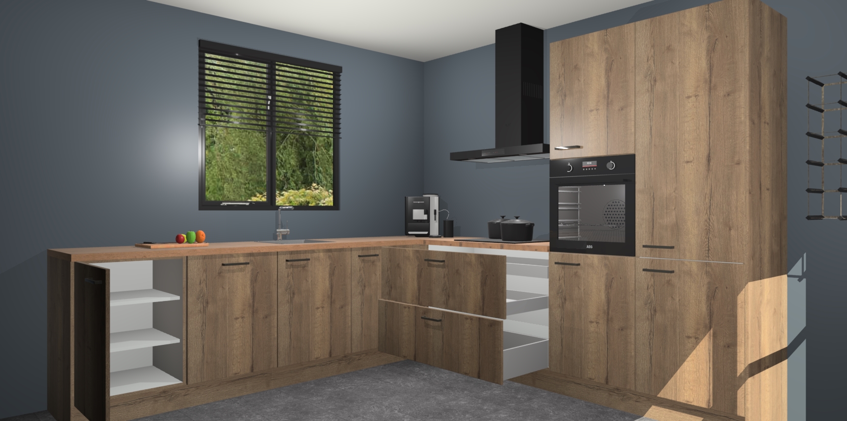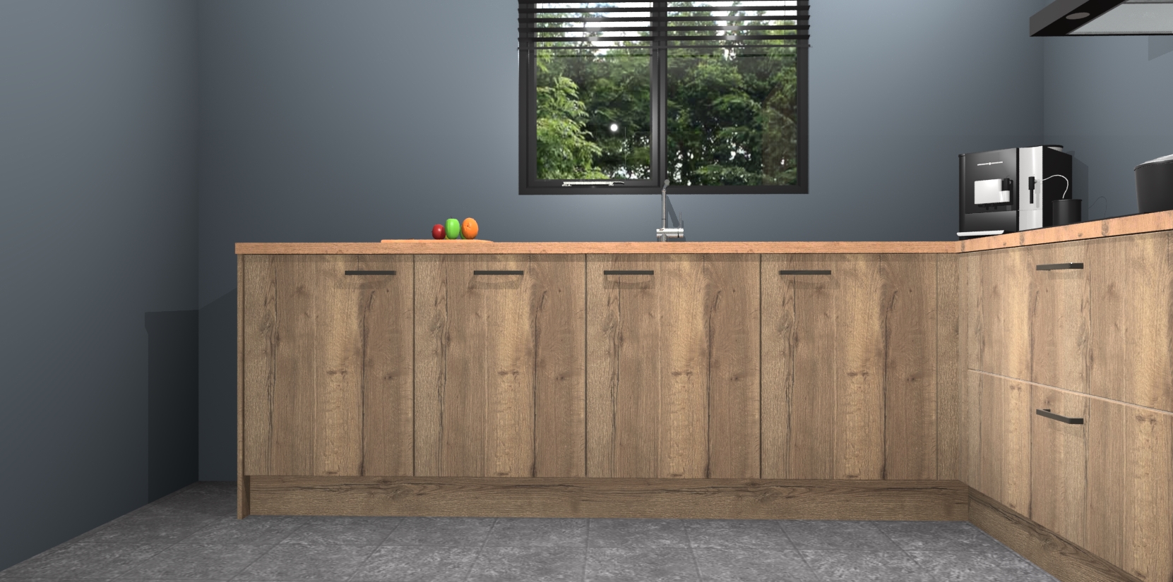De Chocolade Eiken keuken Porto heeft 5 ingebouwde apparaten - een oven, inductiekookplaat, afzuigkap, vaatwasser en koelkast - waarmee u in een handomdraai heerlijke gerechten bereidt. Soft-close deuren zorgen voor nog meer functionaliteit en gemak. En dit alles voor een onverslaanbaar vaste prijs. En als u nu bestelt, duurt de levering maar 7 weken! Wat nog ongelooflijker is, is dat onze kasten voor gemonteerd worden geleverd.