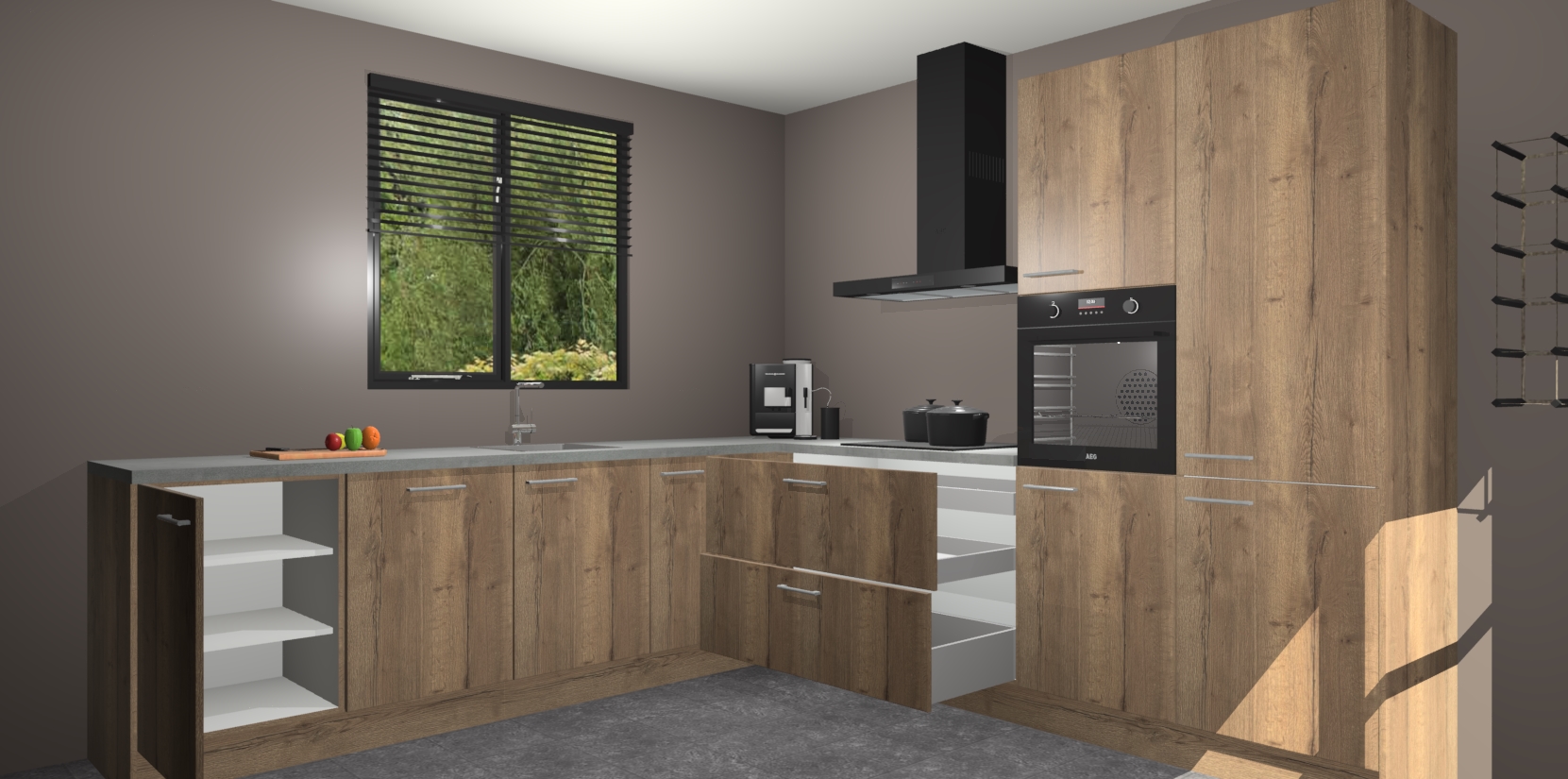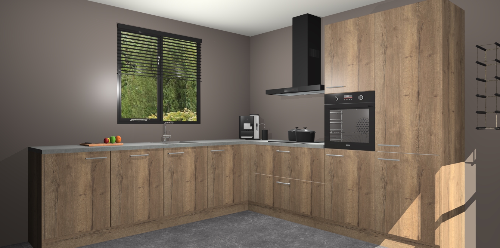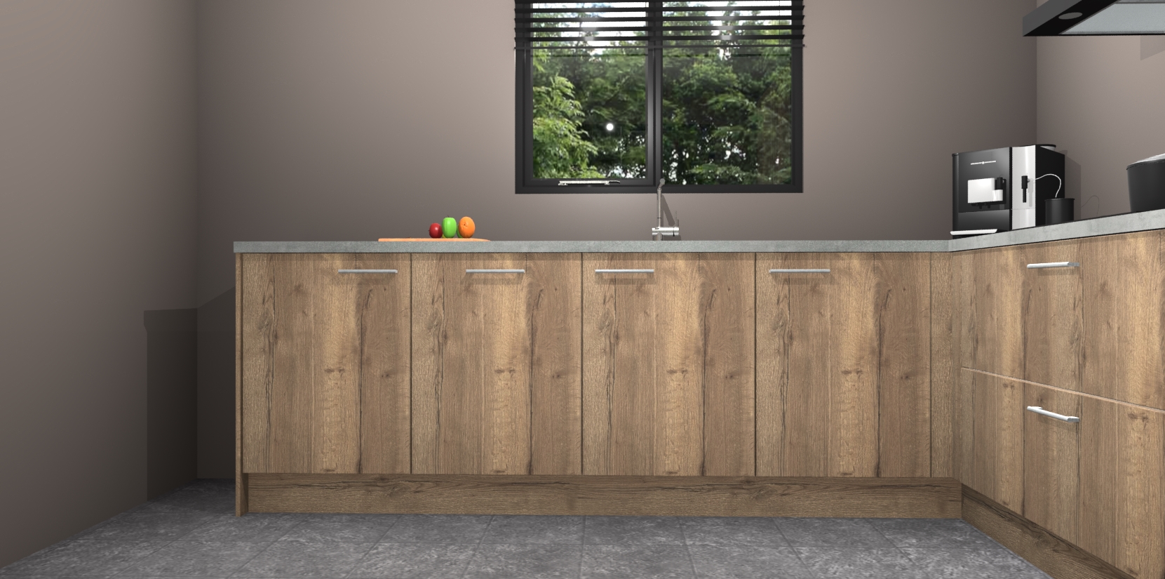De Chocolade Eiken keuken Porto heeft 5 ingebouwde apparaten - een oven, inductiekookplaat, afzuigkap, vaatwasser en koelkast - waarmee u in een handomdraai heerlijke gerechten bereidt. Soft-close deuren zorgen voor nog meer functionaliteit en gemak. En dit alles voor een onverslaanbaar vaste prijs. En als u nu bestelt, duurt de levering maar 7 weken! Wat nog ongelooflijker is, is dat onze kasten voor gemonteerd worden geleverd.