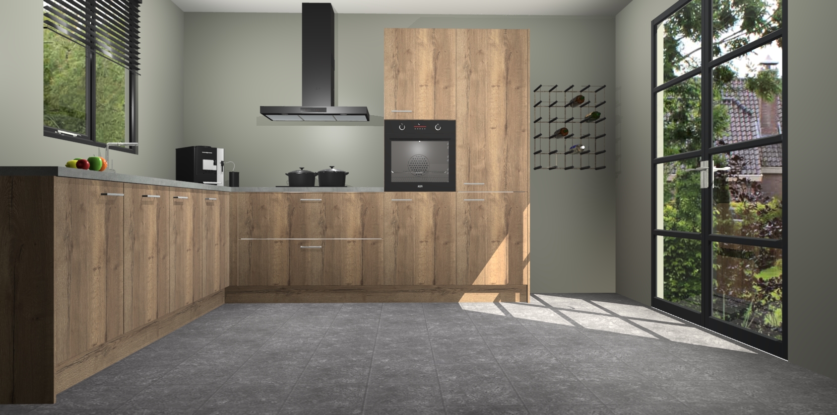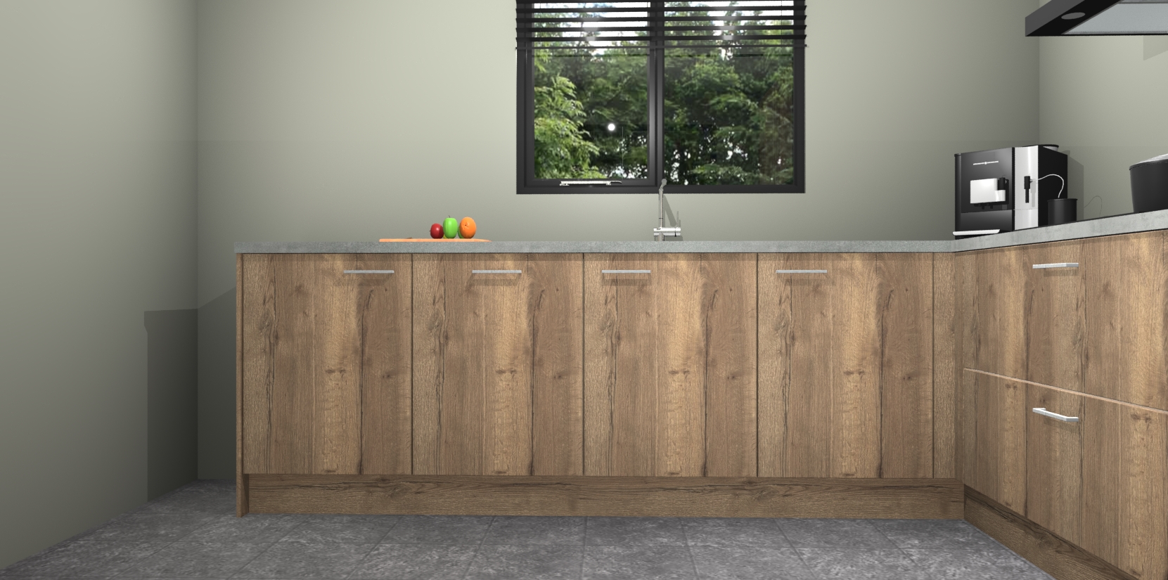 De Chocolade Eiken keuken Porto heeft 5 ingebouwde apparaten - een oven, inductiekookplaat, afzuigkap, vaatwasser en koelkast - waarmee u in een handomdraai heerlijke gerechten bereidt. Soft-close deuren zorgen voor nog meer functionaliteit en gemak. En dit alles voor een onverslaanbaar vaste prijs. En als u nu bestelt, duurt de levering maar 7 weken! Wat nog ongelooflijker is, is dat onze kasten voor gemonteerd worden geleverd.