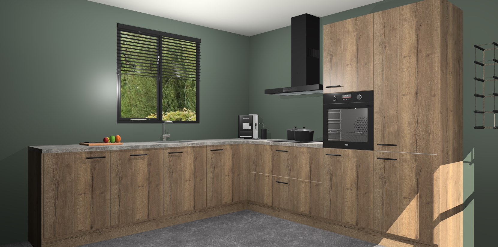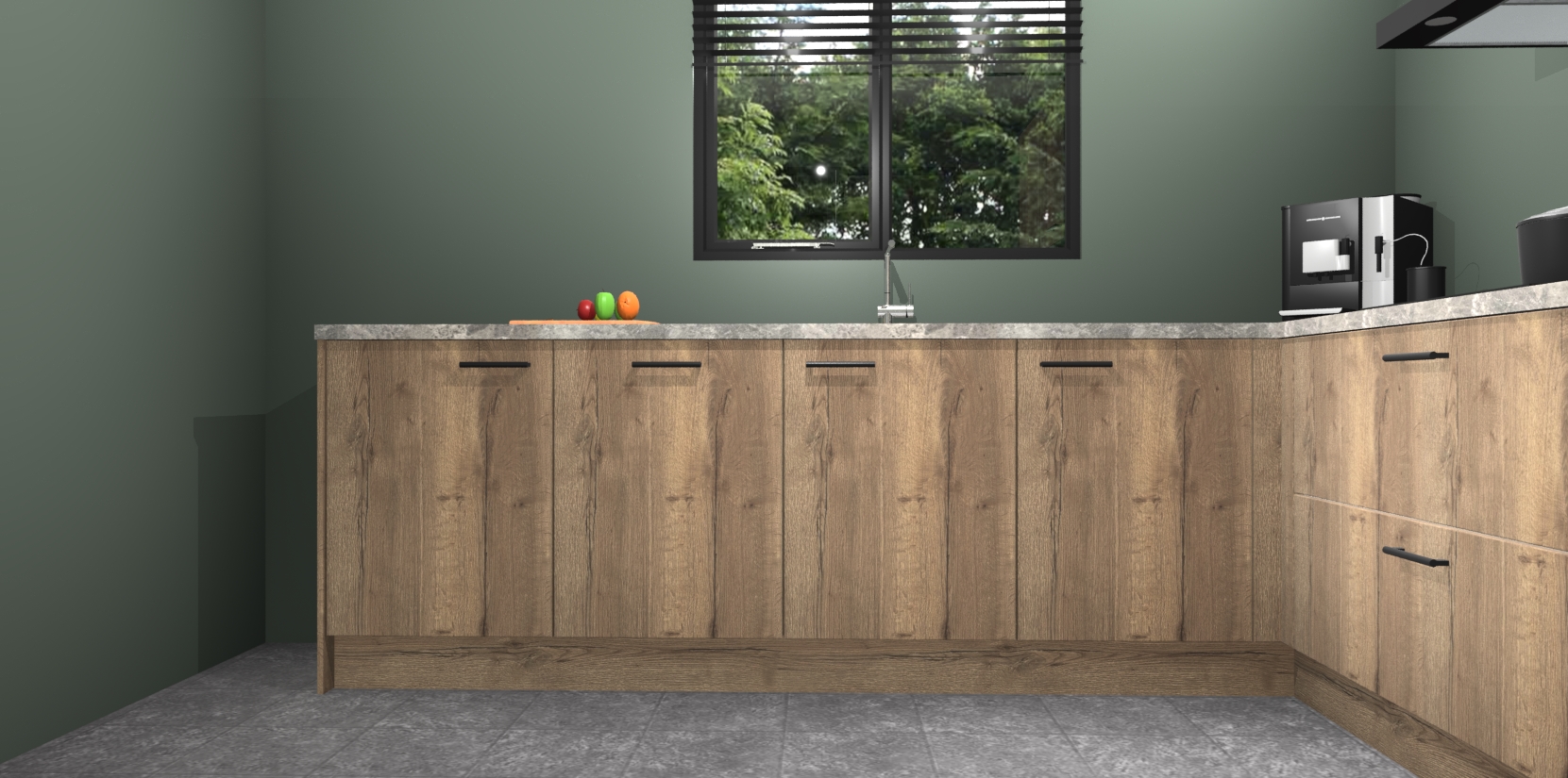 De Chocolade Eiken keuken Porto heeft 5 ingebouwde apparaten - een oven, inductiekookplaat, afzuigkap, vaatwasser en koelkast - waarmee u in een handomdraai heerlijke gerechten bereidt. Soft-close deuren zorgen voor nog meer functionaliteit en gemak. En dit alles voor een onverslaanbaar vaste prijs. En als u nu bestelt, duurt de levering maar 7 weken! Wat nog ongelooflijker is, is dat onze kasten voor gemonteerd worden geleverd.