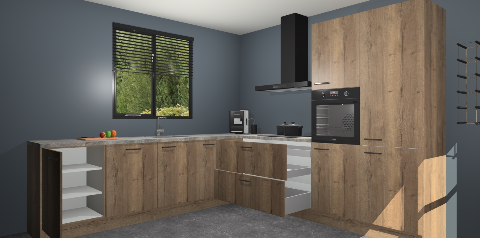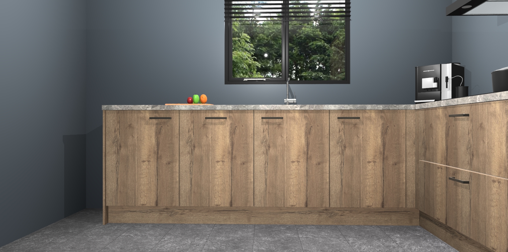 De Chocolade Eiken keuken Porto heeft 5 ingebouwde apparaten - een oven, inductiekookplaat, afzuigkap, vaatwasser en koelkast - waarmee u in een handomdraai heerlijke gerechten bereidt. Soft-close deuren zorgen voor nog meer functionaliteit en gemak. En dit alles voor een onverslaanbaar vaste prijs. En als u nu bestelt, duurt de levering maar 7 weken! Wat nog ongelooflijker is, is dat onze kasten voor gemonteerd worden geleverd.