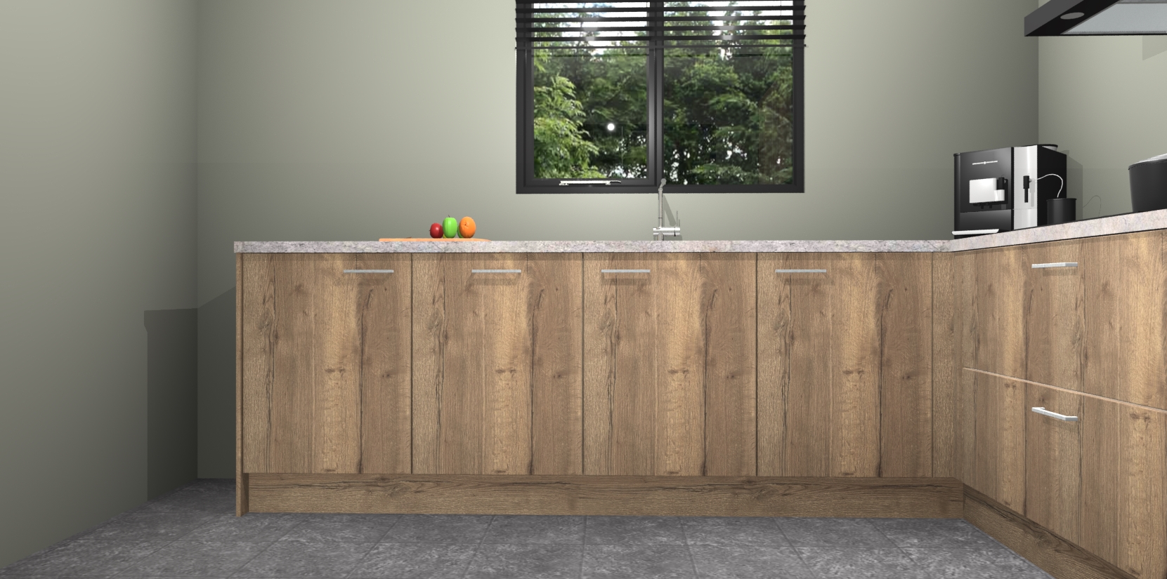 De Chocolade Eiken keuken Porto heeft 5 ingebouwde apparaten - een oven, inductiekookplaat, afzuigkap, vaatwasser en koelkast - waarmee u in een handomdraai heerlijke gerechten bereidt. Soft-close deuren zorgen voor nog meer functionaliteit en gemak. En dit alles voor een onverslaanbaar vaste prijs. En als u nu bestelt, duurt de levering maar 7 weken! Wat nog ongelooflijker is, is dat onze kasten voor gemonteerd worden geleverd.