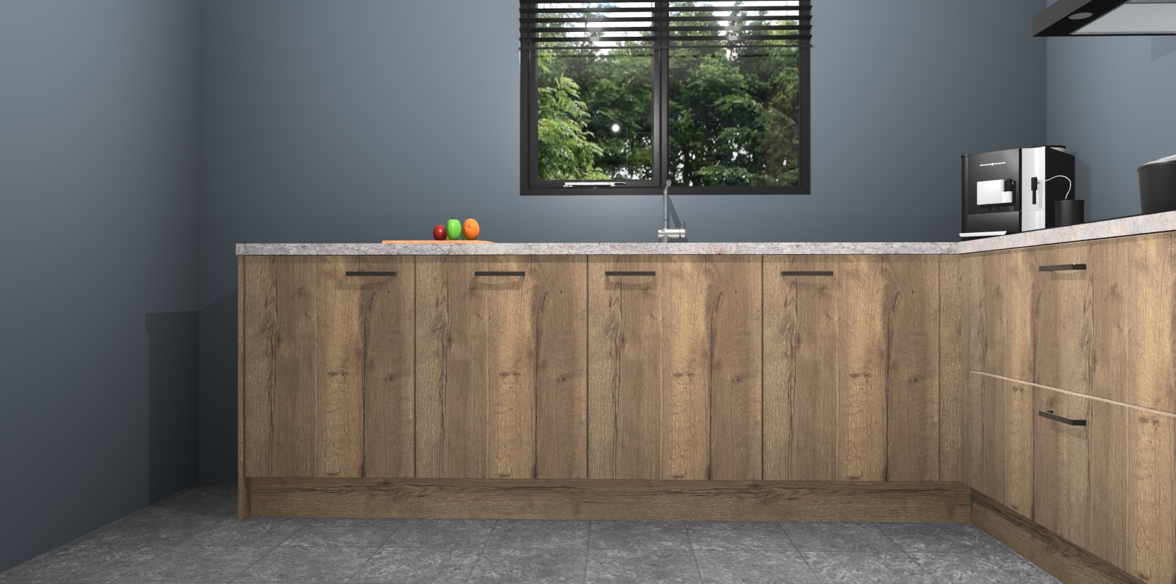 De Chocolade Eiken keuken Porto heeft 5 ingebouwde apparaten - een oven, inductiekookplaat, afzuigkap, vaatwasser en koelkast - waarmee u in een handomdraai heerlijke gerechten bereidt. Soft-close deuren zorgen voor nog meer functionaliteit en gemak. En dit alles voor een onverslaanbaar vaste prijs. En als u nu bestelt, duurt de levering maar 7 weken! Wat nog ongelooflijker is, is dat onze kasten voor gemonteerd worden geleverd.