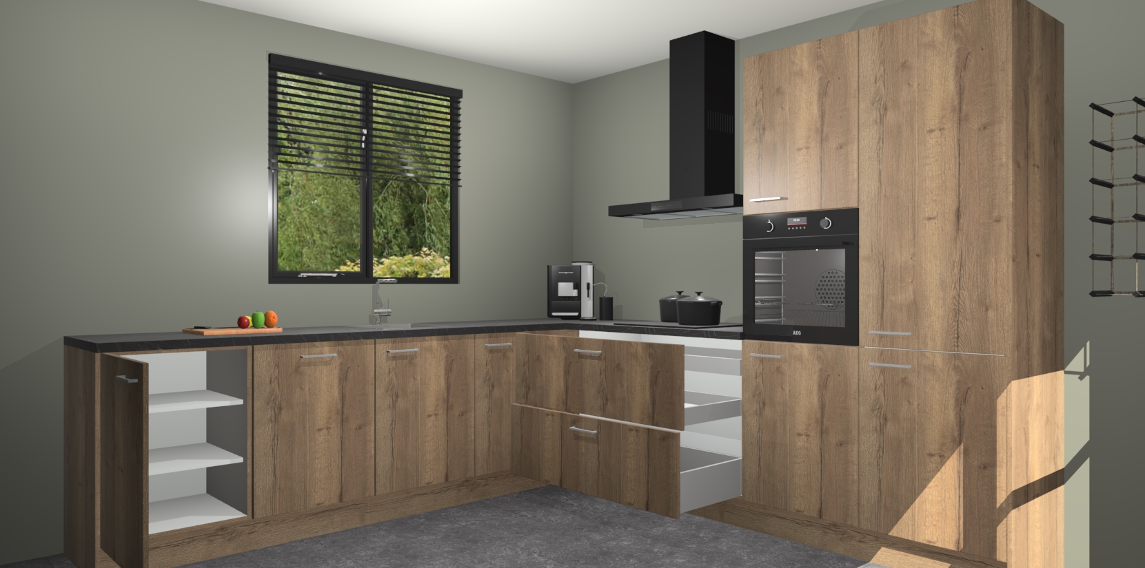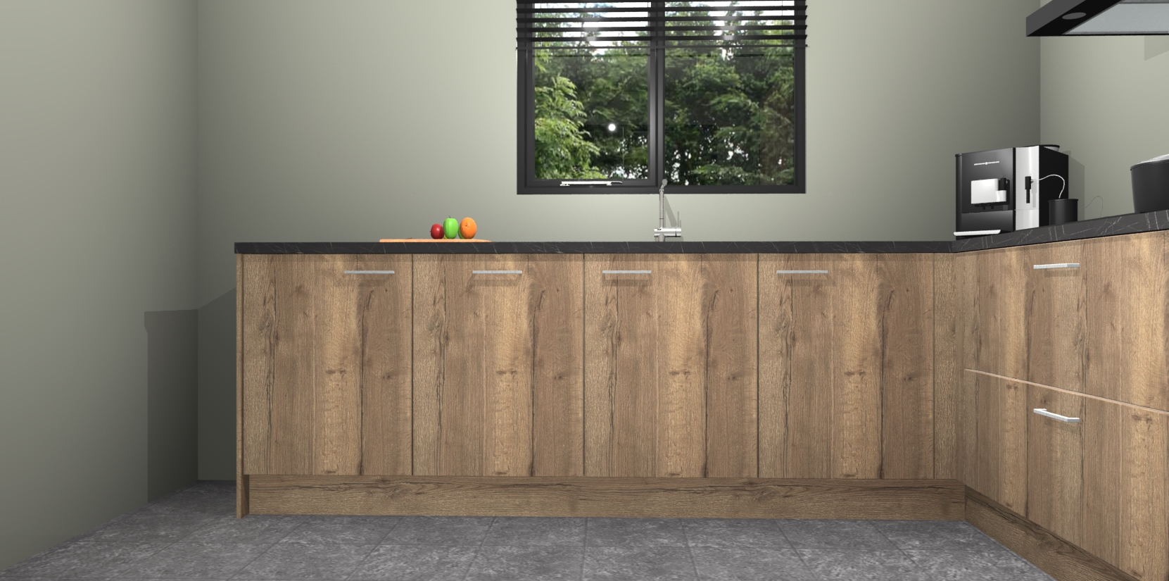 De Chocolade Eiken keuken Porto heeft 5 ingebouwde apparaten - een oven, inductiekookplaat, afzuigkap, vaatwasser en koelkast - waarmee u in een handomdraai heerlijke gerechten bereidt. Soft-close deuren zorgen voor nog meer functionaliteit en gemak. En dit alles voor een onverslaanbaar vaste prijs. En als u nu bestelt, duurt de levering maar 7 weken! Wat nog ongelooflijker is, is dat onze kasten voor gemonteerd worden geleverd.