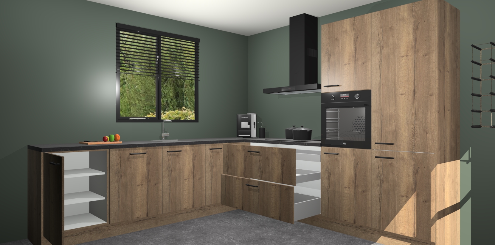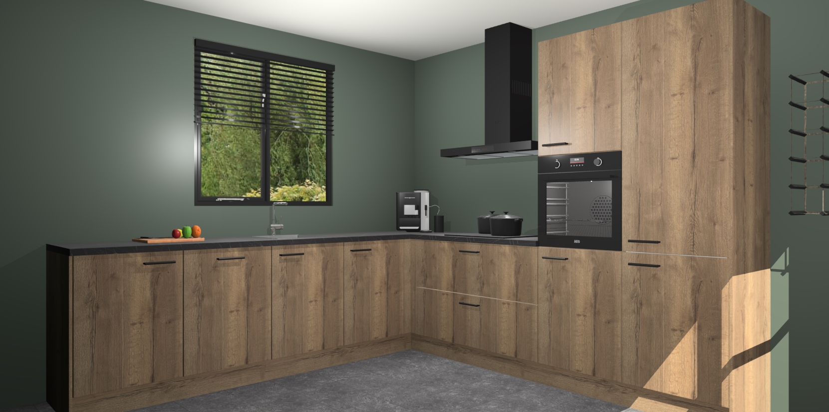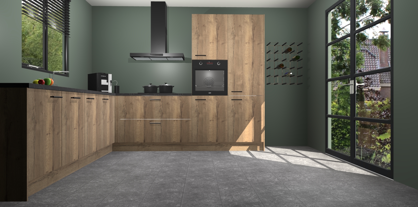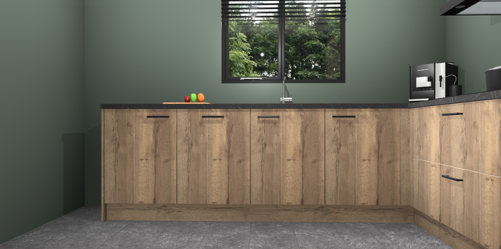 De Chocolade Eiken keuken Porto heeft 5 ingebouwde apparaten - een oven, inductiekookplaat, afzuigkap, vaatwasser en koelkast - waarmee u in een handomdraai heerlijke gerechten bereidt. Soft-close deuren zorgen voor nog meer functionaliteit en gemak. En dit alles voor een onverslaanbaar vaste prijs. En als u nu bestelt, duurt de levering maar 7 weken! Wat nog ongelooflijker is, is dat onze kasten voor gemonteerd worden geleverd.