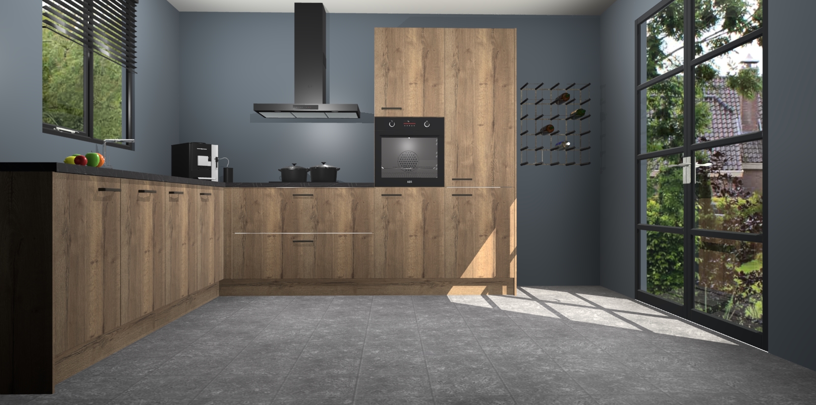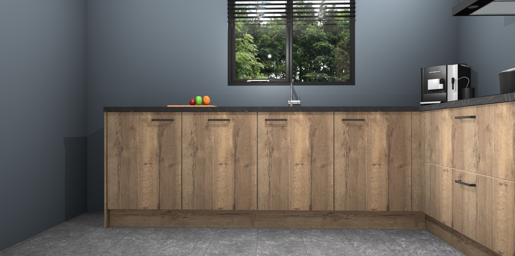 De Chocolade Eiken keuken Porto heeft 5 ingebouwde apparaten - een oven, inductiekookplaat, afzuigkap, vaatwasser en koelkast - waarmee u in een handomdraai heerlijke gerechten bereidt. Soft-close deuren zorgen voor nog meer functionaliteit en gemak. En dit alles voor een onverslaanbaar vaste prijs. En als u nu bestelt, duurt de levering maar 7 weken! Wat nog ongelooflijker is, is dat onze kasten voor gemonteerd worden geleverd.