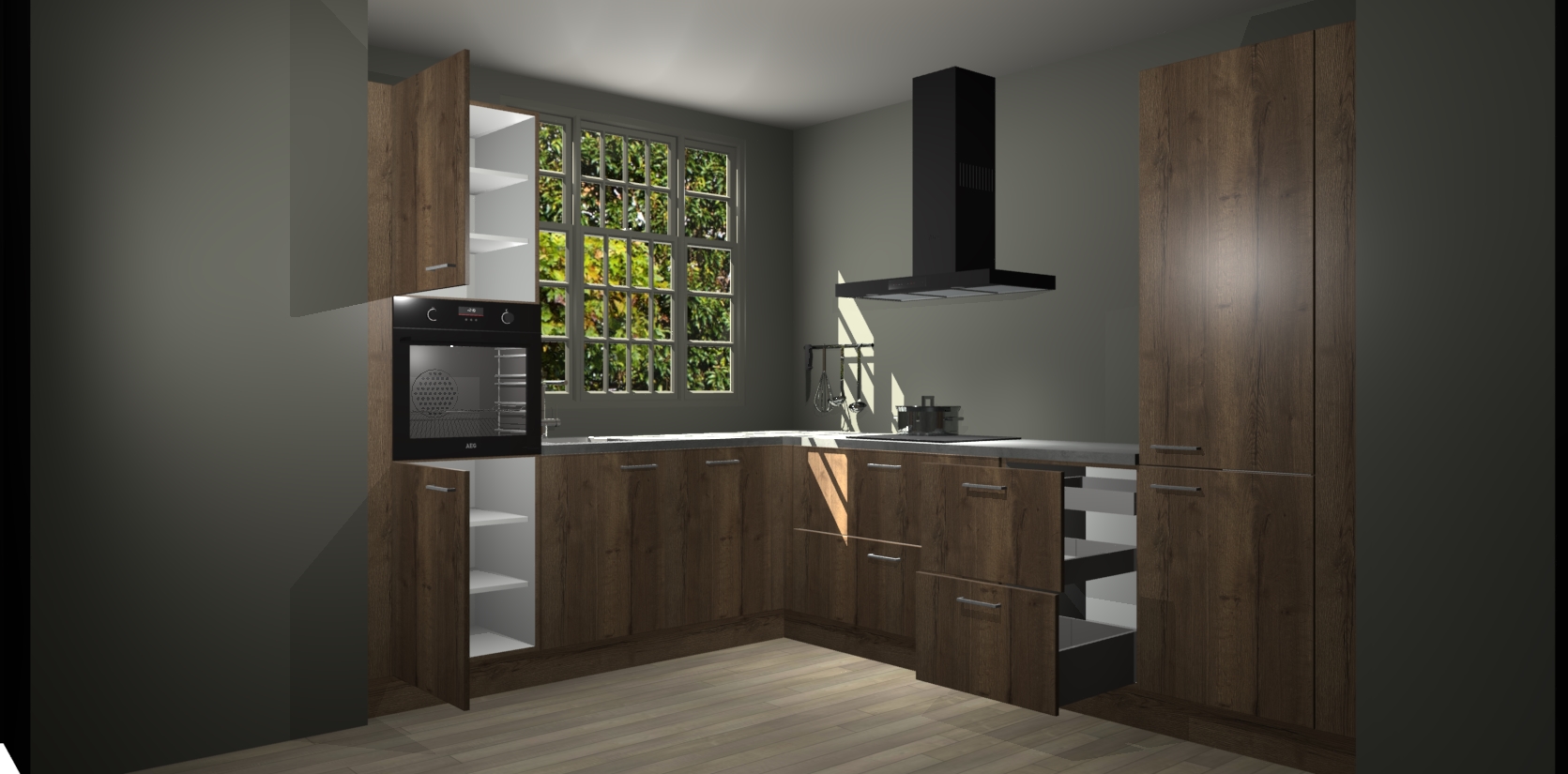 Met een modern, tijdloos design en ruime opslagruimte, zult u zich in no-time thuis voelen in uw nieuwe keuken. Uw leven wordt eenvoudiger met de soft-close deuren die voor het ultieme stille comfort zorgen - geen geluid dat u stoort terwijl u kookt. Ook is de keuken voorzien van 5 ingebouwde apparaten: een oven, inductie kookplaat, afzuigkap, vaatwasser en koelkast. Deze kunnen gemakkelijk na bestelling worden bijgewerkt naar AEG - waardoor uw luxe ervaring compleet is.